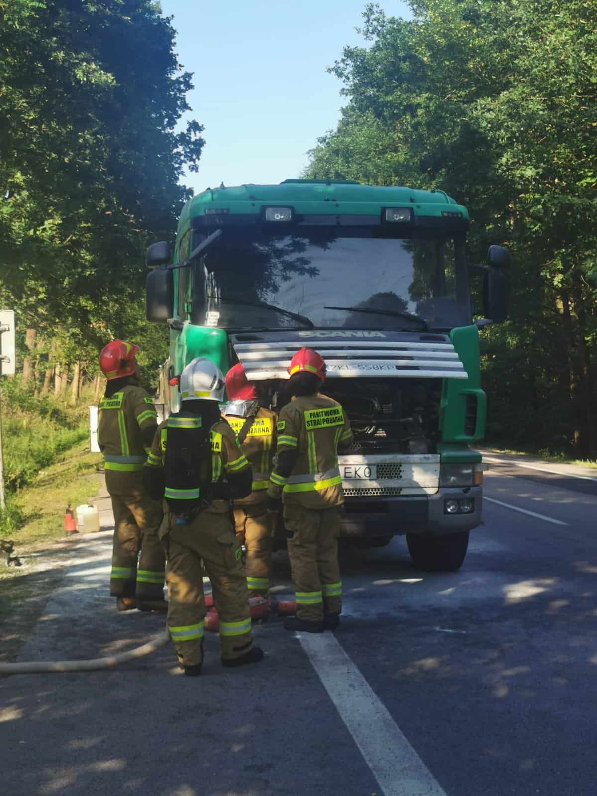 Na DK 6 pomiędzy Pogorzelicami a Runowem doszło do pożaru pod kabiną samochodu ciężarowego.