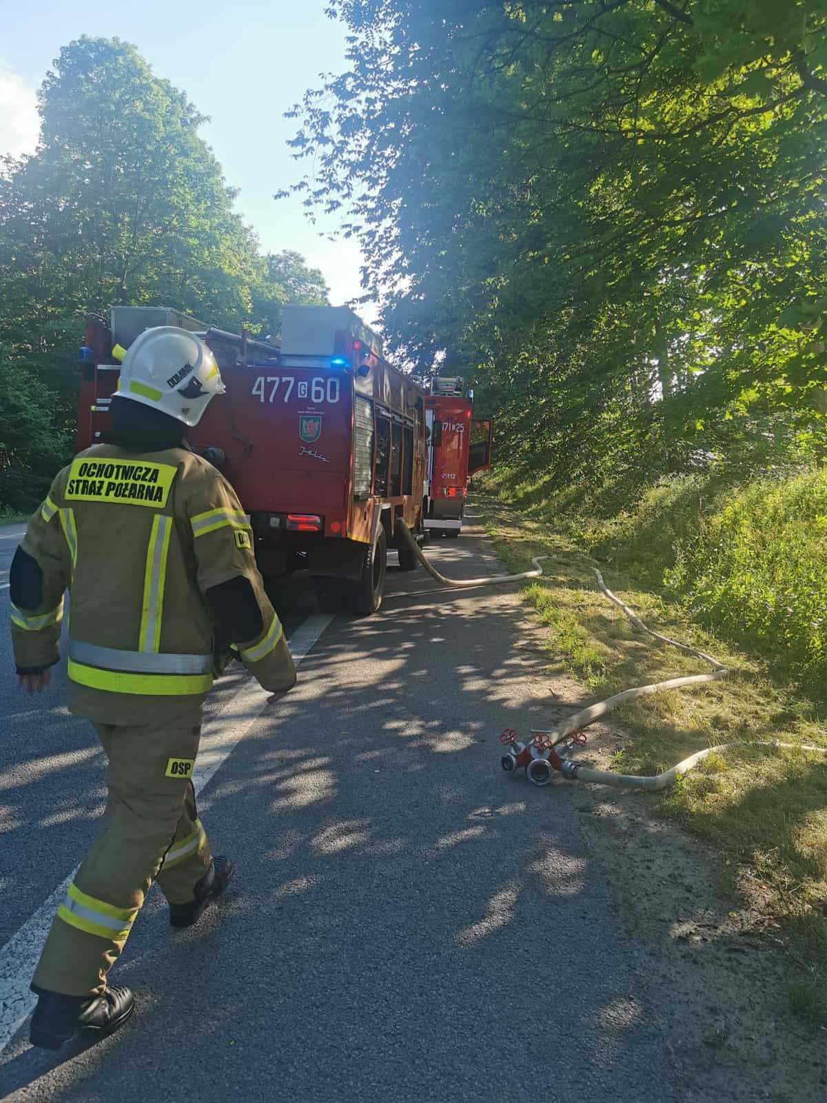 Na miejsce wysłano trzy zastępy straży pożarnej – po jednym z JRG Lębork, OSP Leśnice i OSP Nowa Wieś Lęborska. Był także patrol policji.