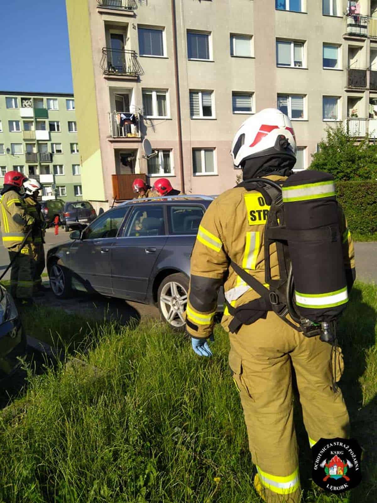 Zdarzenie miało miejsce w środę, 26 czerwca, około godziny 18:00 na ul. Mireckiego. Doszło tam do pożaru pod maską samochodu osobowego. Na miejsce wysłano dwa zastępy straży pożarnej – po jednym z JRG Lębork i OSP Lębork. Był także patrol policji.