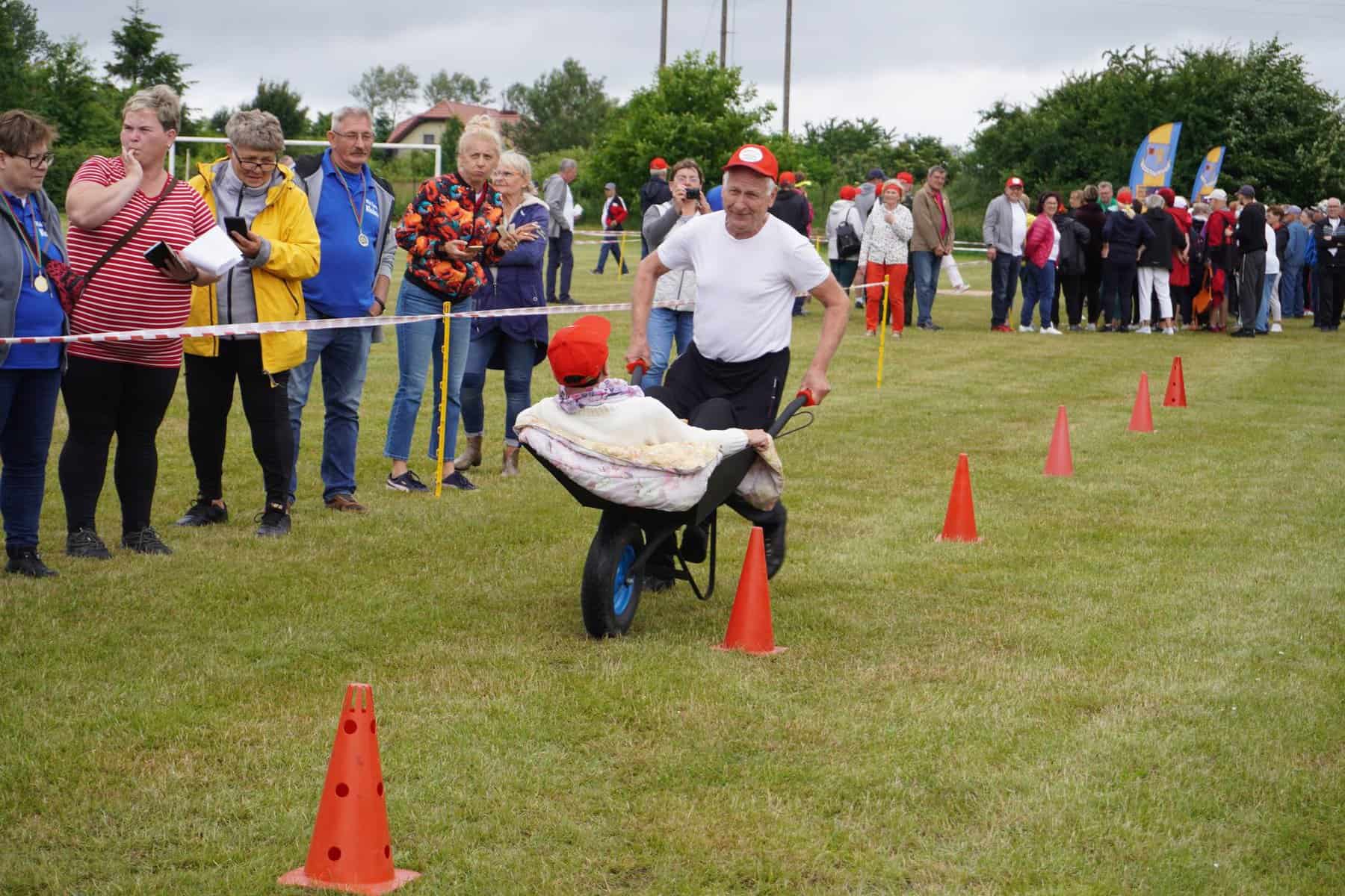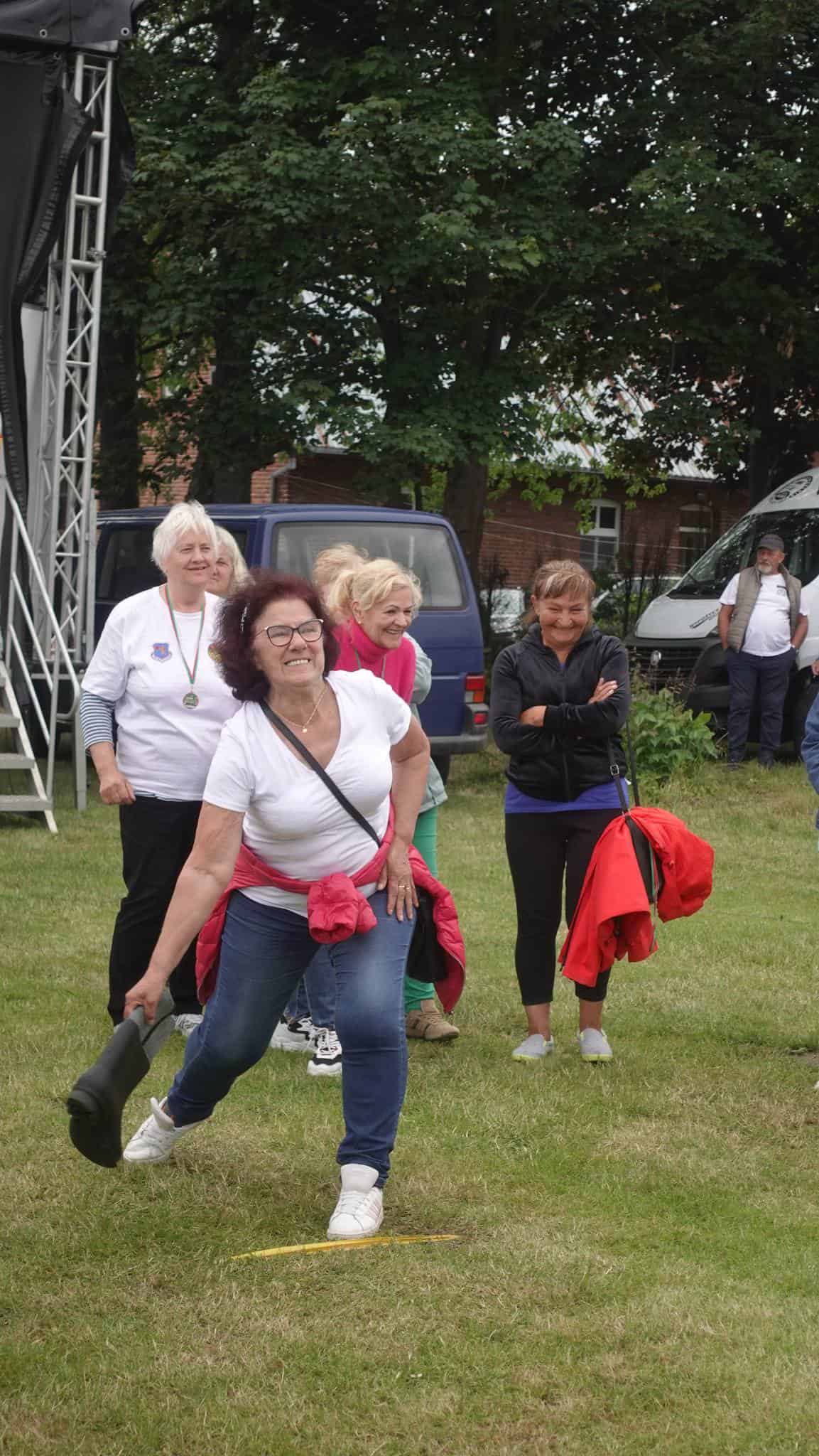 – Wzięliśmy udział we wszystkich konkurencjach, którymi były rzut gumowcem, rzut podkową, „Kak-fryc” bieg z jajkiem, bieg w worku, dojenie sztucznej krowy, slalom na taczce oraz występ artystyczny. Nasze treningi nie poszły na marne – napisali zadowoleni seniorzy na facebookowym profilu Klubu Seniora i Rodziny w Cewicach.