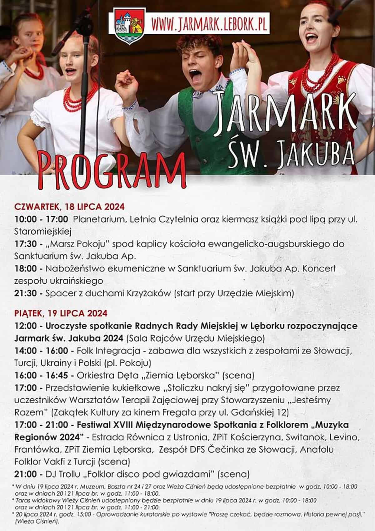 Więcej informacji o programie Jarmarku św. Jakuba 2024 można znaleźć na stronie: www.jarmark.lebork.pl