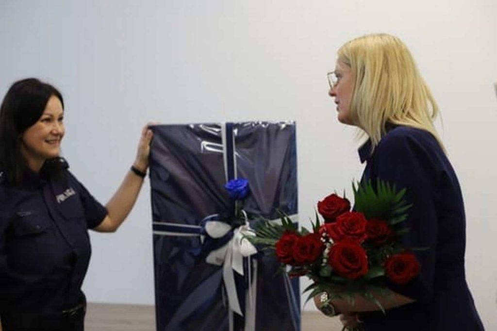 Zakupu tego urządzenia na potrzeby łebskich mundurowych dokonała Gminna Komisja Rozwiązywania Problemów Alkoholowych przy Urzędzie Miejskim w Łebie. Z okazji Święta Policji, na ręce komendant komisariatu sierż. szt. Katarzyny Litwin przekazała je burmistrz Łeby Agnieszka Derba z miłym akcentem w postaci kwiatów.