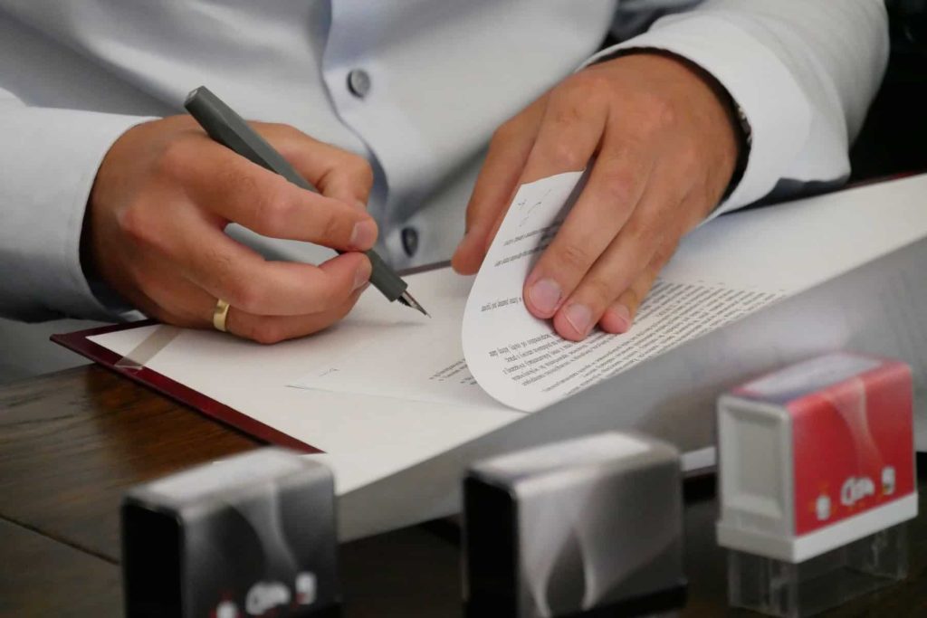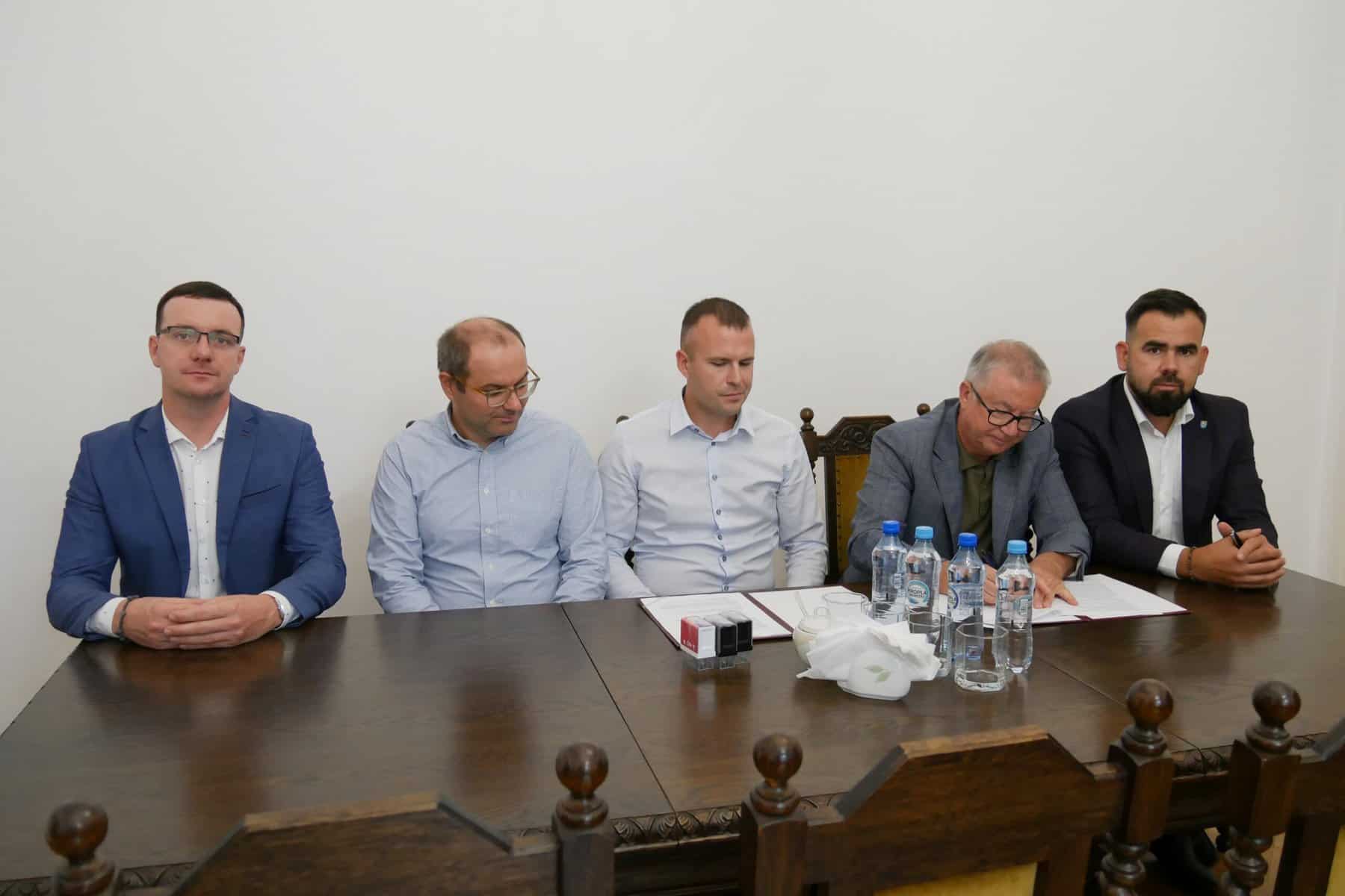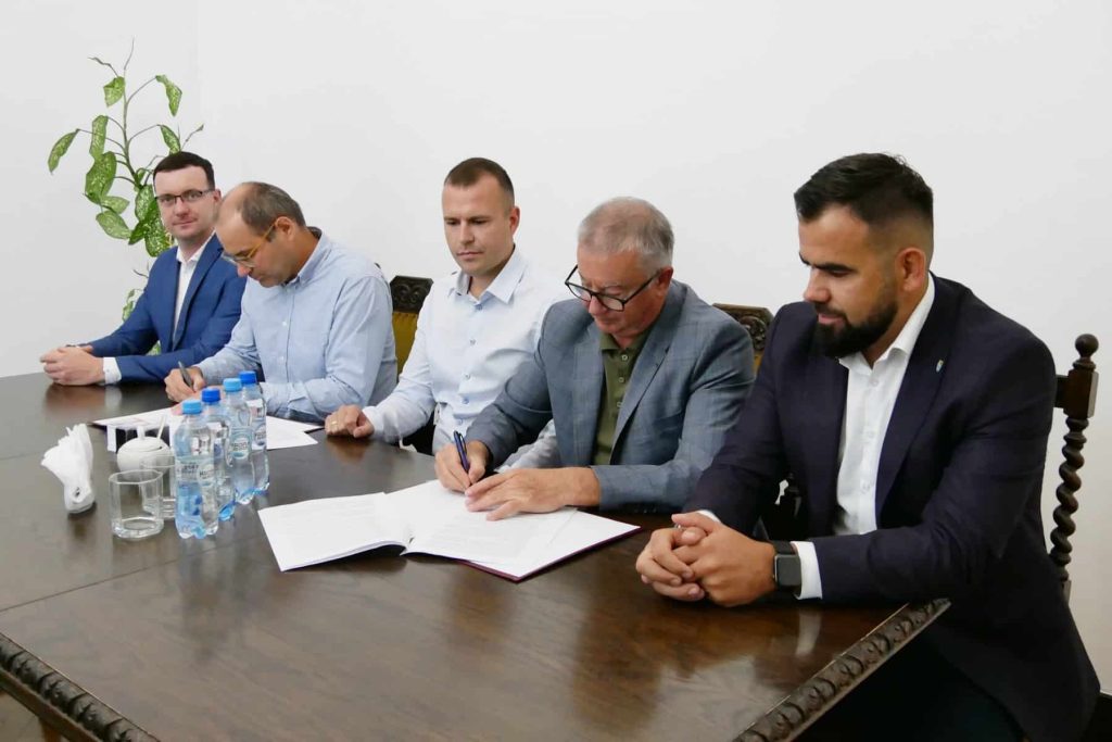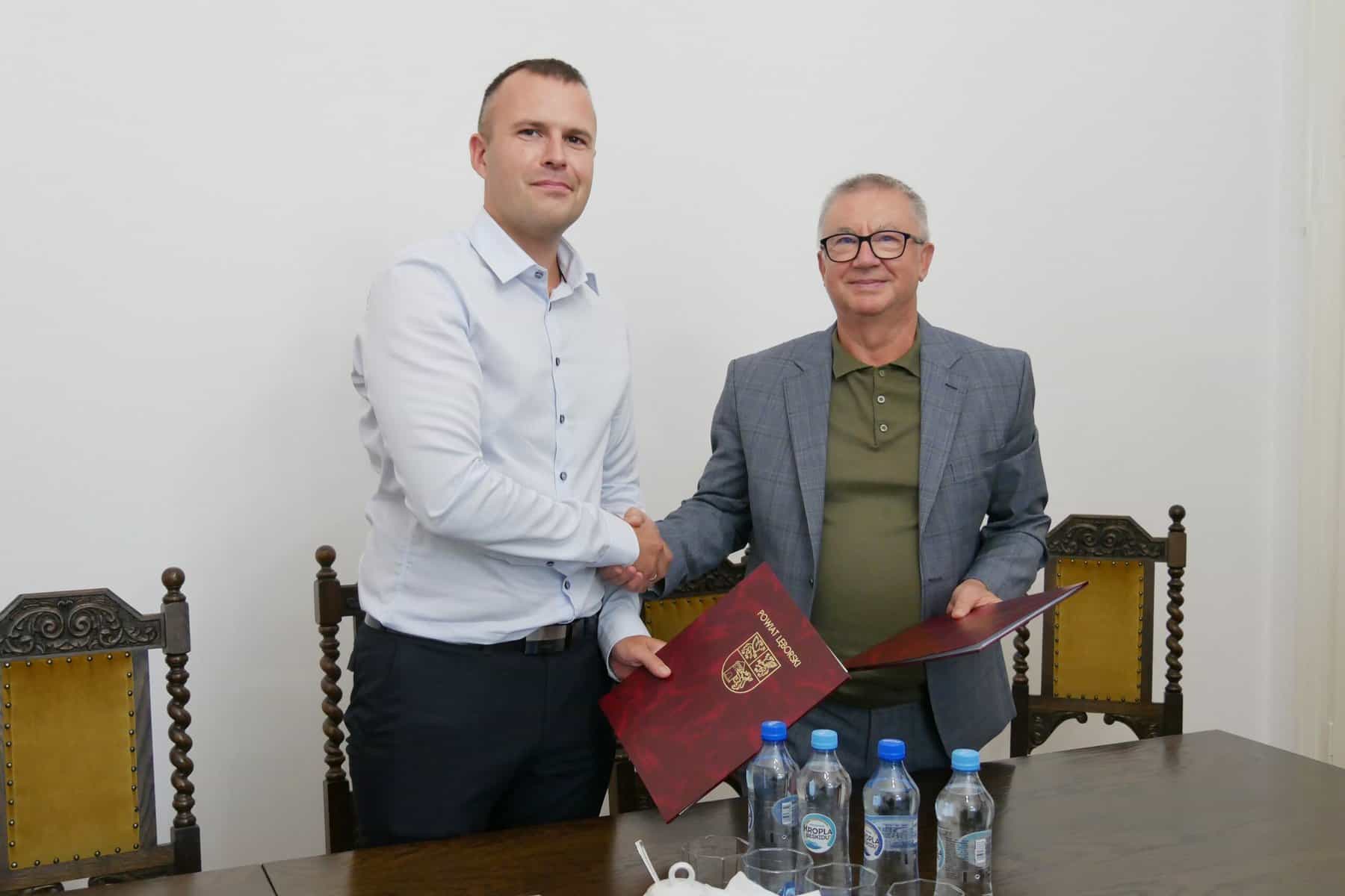 Umowę na wykonanie prac w obecności starosty Tomasza Litwina i wicestarosty Adriana Wenty sygnowali: Mariusz Barański z Zarządu Dróg Powiatowych oraz Maciej Ignatowski – prezes zarządu i Piotr Grzech – wiceprezes Firmy Budowlano-Drogowej MTM z Gdyni – wykonawca inwestycji.