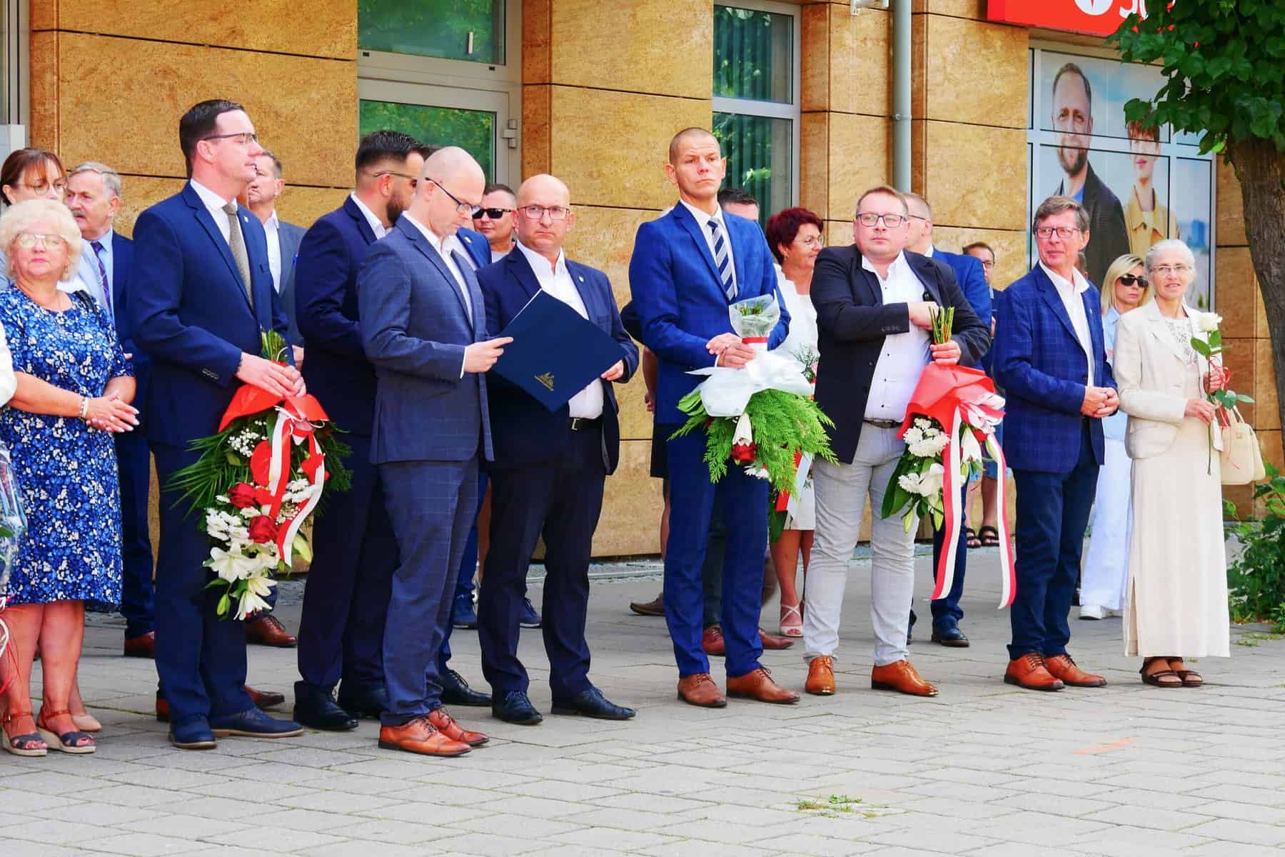 W uroczystości uczestniczyli samorządowcy szczebla wojewódzkiego, powiatowego, miejskiego i gminnego. Byli wśród nich burmistrz Lęborka Jarosław Litwin, starosta powiatu lęborskiego Tomasz Litwin, przewodniczący Rady Miejskiej i Powiatu Lęborskiego, przedstawiciele wojska, służb mundurowych, kombatantów, harcerzy, reprezentantów placówek oświatowych, stowarzyszeń oraz instytucji. Obecne były też poczty sztandarowe 1. Lęborskiego Batalionu Zmechanizowanego im. gen. Jerzego Jastrzębskiego, związku żołnierzy oraz lęborskich szkół. Nie zabrakło też mieszkańców Lęborka.