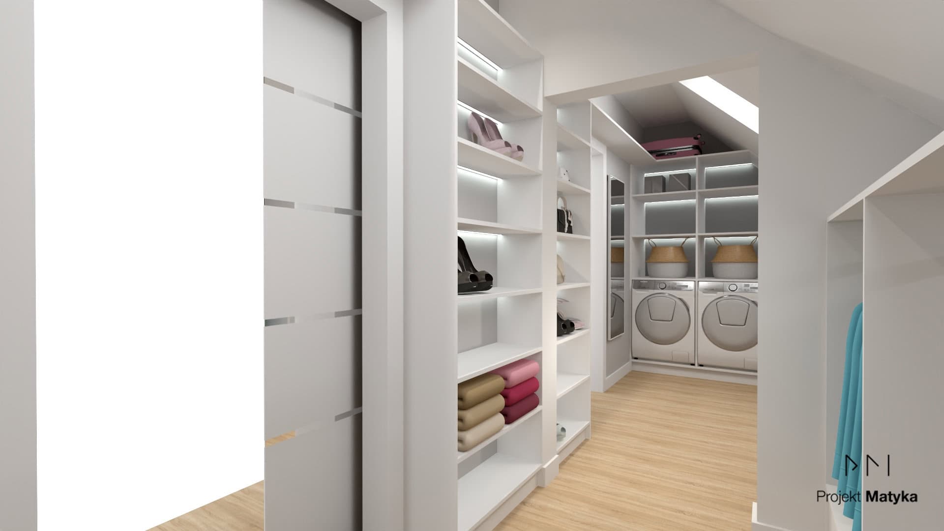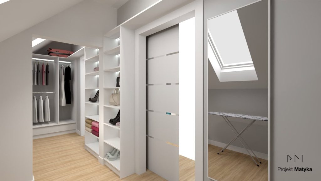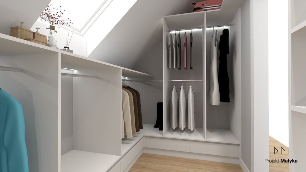 Oświetlenie pełni istotną rolę zarówno w funkcjonalności, jak i estetyce garderoby. Jasne, centralne światło sufitowe oraz dodatkowe punkty świetlne w szafach i przy półkach sprawią, że ubrania będą lepiej widoczne, a sama przestrzeń nabierze nowoczesnego, eleganckiego charakteru.