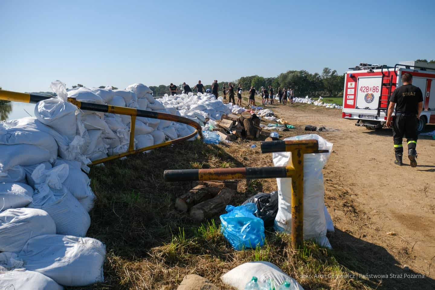– Poprzez przerwany wał woda napływała na pola a następnie do miejscowości Wronów. Zgłoszono do Sztabu Brzeg potrzebę zadysponowana plutonów wsparcia celem uszczelnienia wału. O godzinie 19:00 wyrwa w wale została uszczelniona w pierwszej fazie tak, że woda już nie napływała z rozlewiska Nysy. O godzinie 20:00 woda na polach opadła o 10 cm – relacjonują strażacy na facebookowym profilu Komendy Wojewódzkiej PSP w Gdańsku.