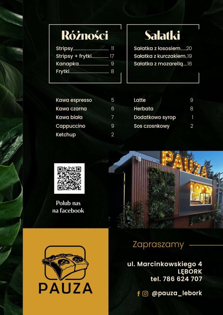 Nowy food truck „Pauza”, usytuowany w pobliżu szkoły ponadpodstawowej w Lęborku, jest doskonałym miejscem na szybki i smaczny posiłek. To idealna lokalizacja dla uczniów i osób w biegu, którzy chcą się posilić i zregenerować w czasie krótkiej przerwy. Lokal oferuje szeroką gamę przekąsek i dań, które z pewnością zadowolą każdy gust.