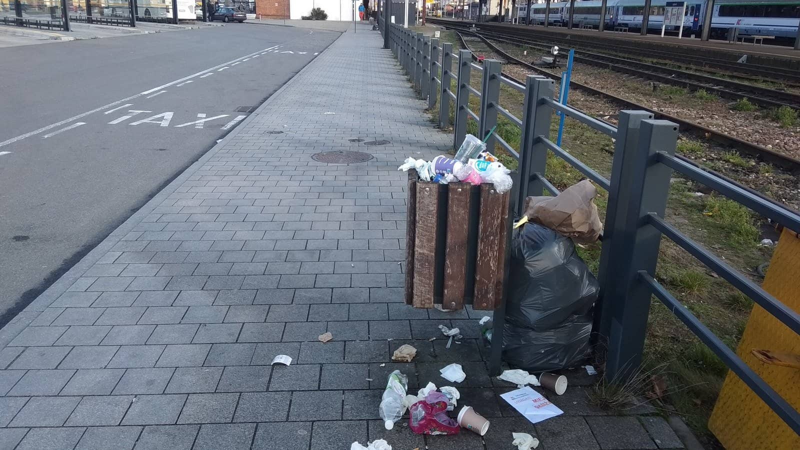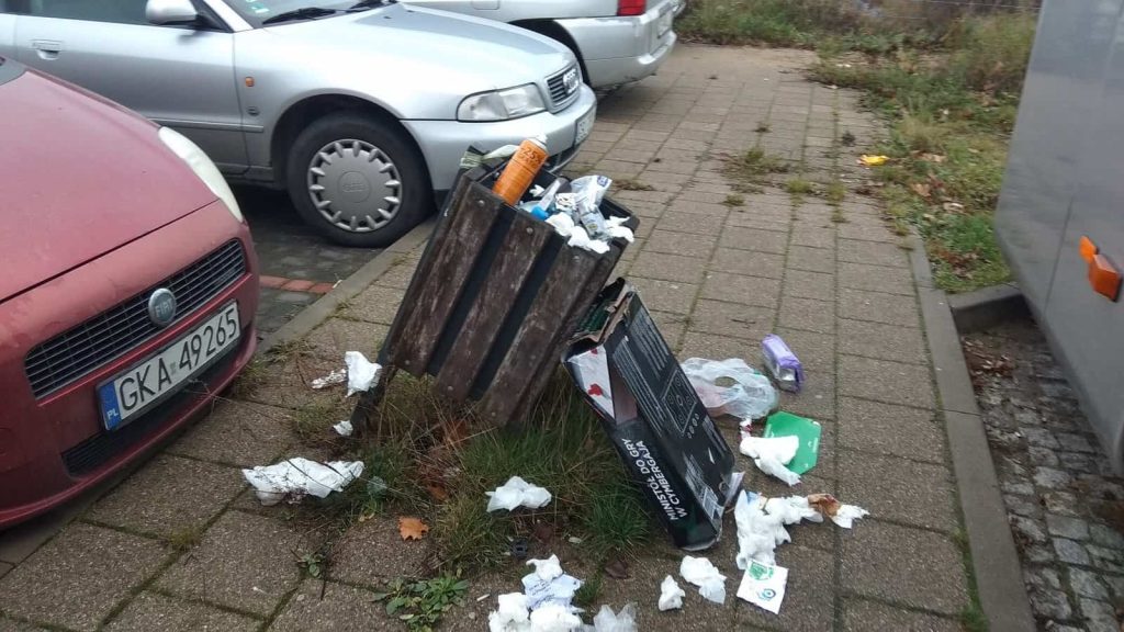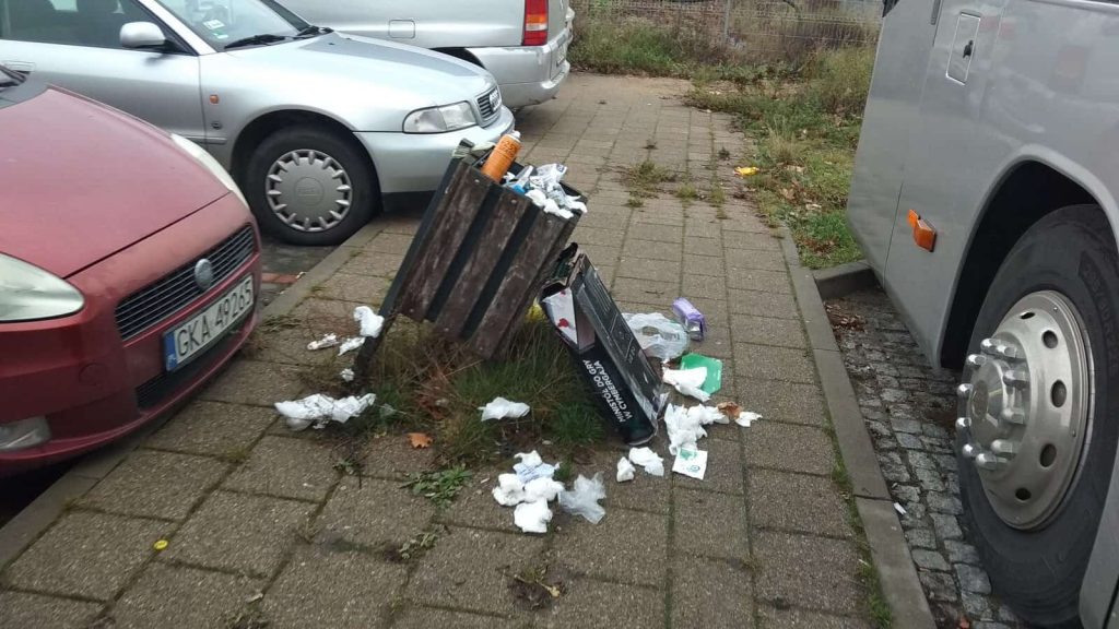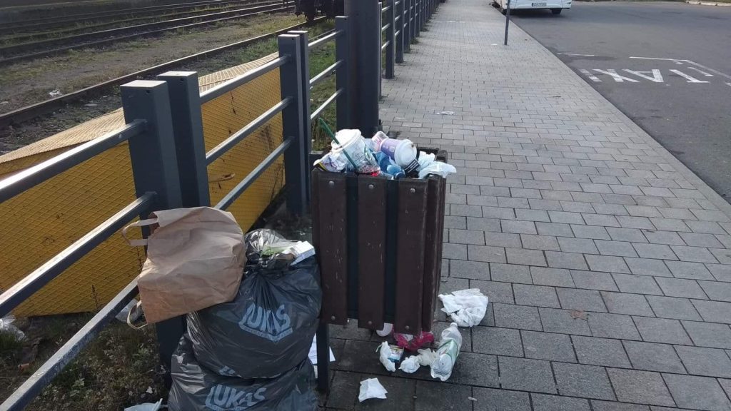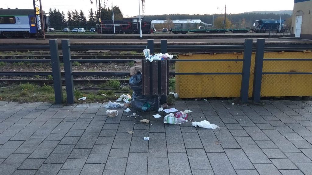 Korzystając często z Lęborskiego Węzła Przesiadkowego możemy zauważyć, że regularnie przepełniony jest kosz na śmieci, znajdujący się przy barierkach wzdłuż torów kolejowych. Sterta śmieci nie wygląda estetycznie, a codziennie mijają ją pasażerowie z różnych stron Polski, przesiadający się z pociągów na autokary komunikacji zastępczej relacji Lębork – Słupsk.