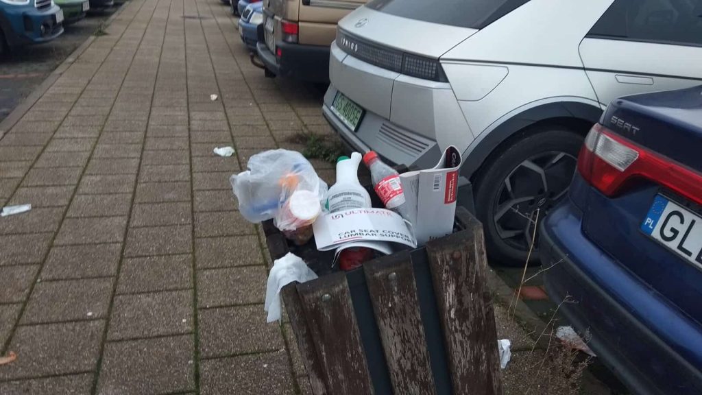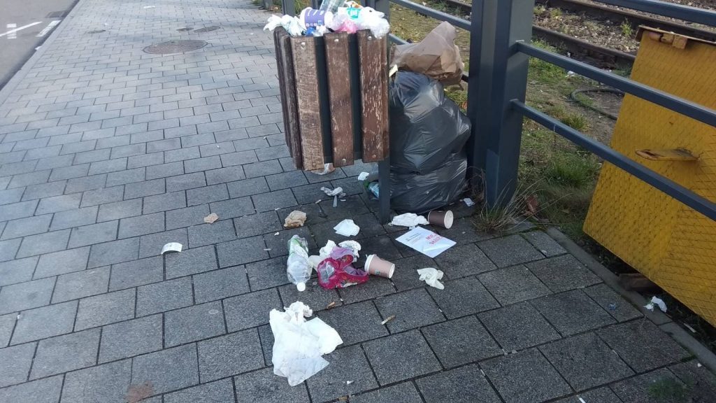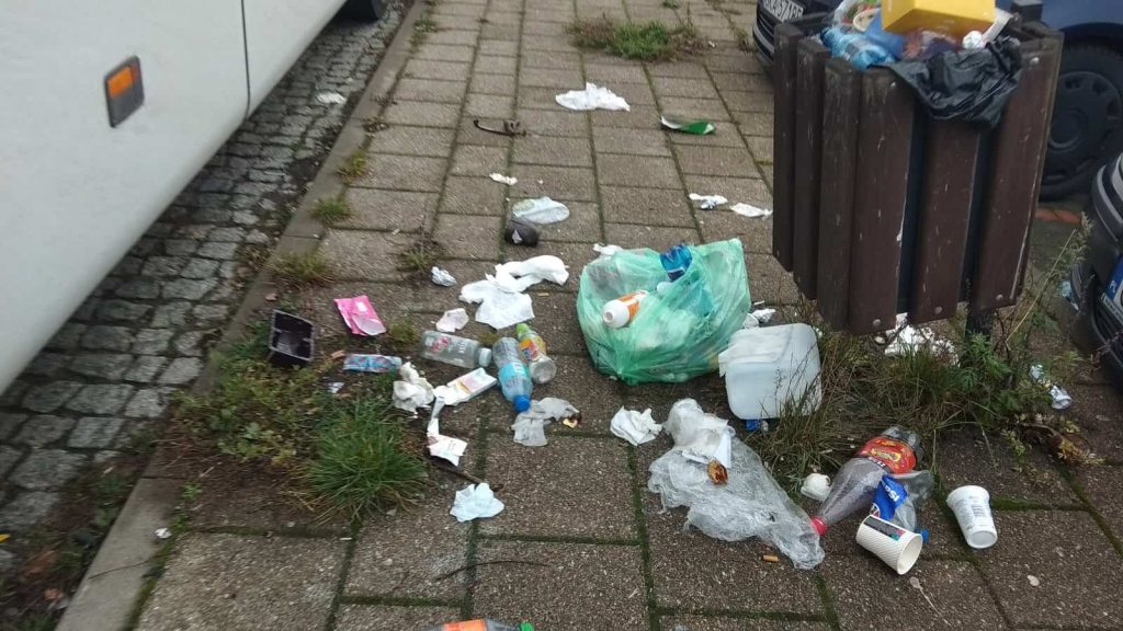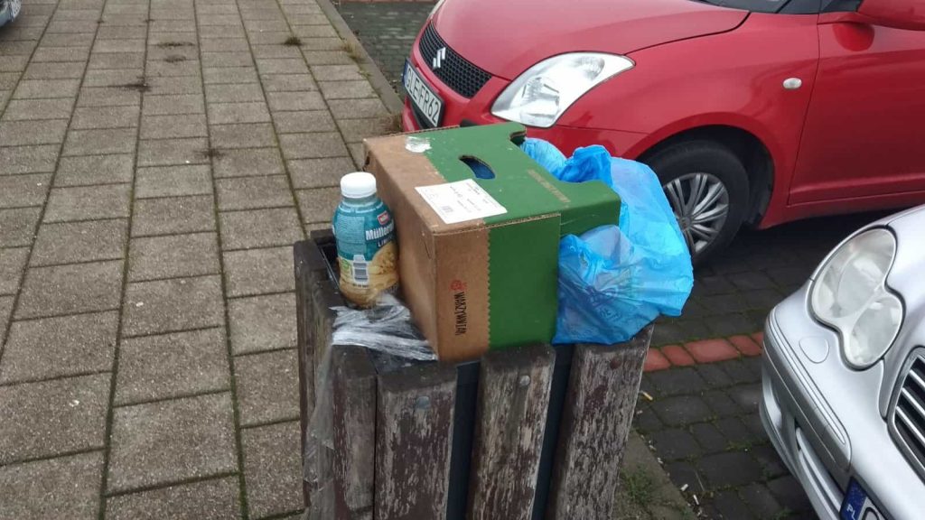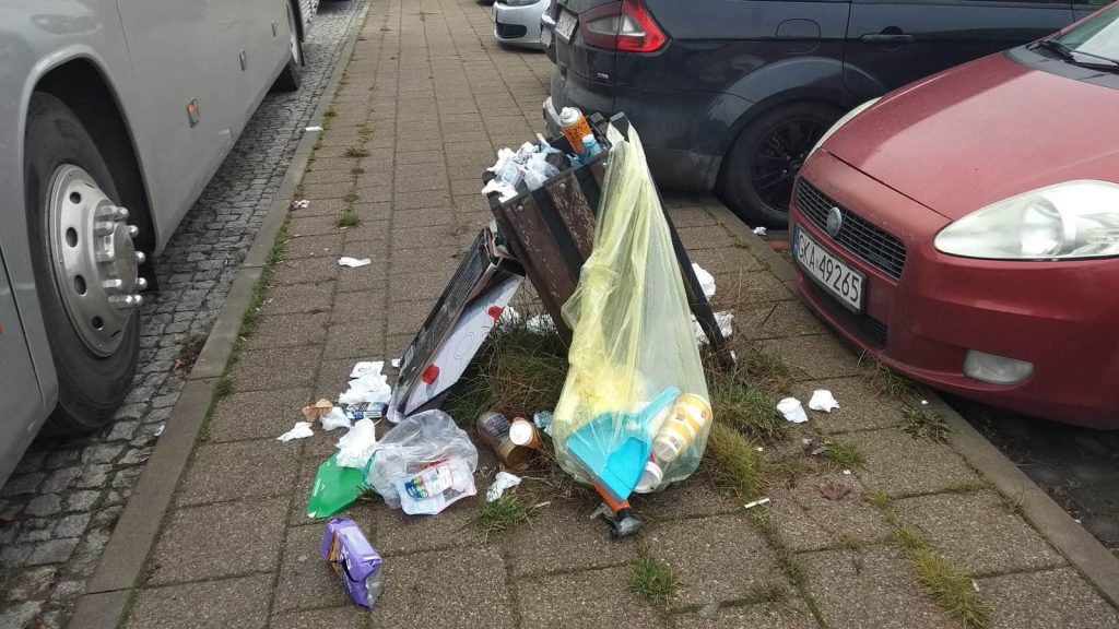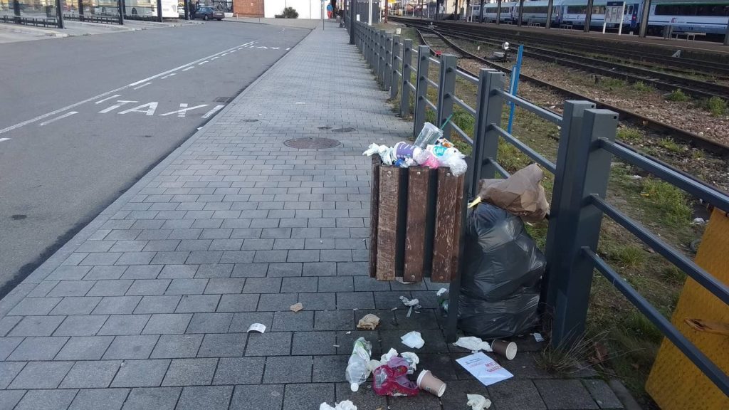 Korzystając często z Lęborskiego Węzła Przesiadkowego możemy zauważyć, że regularnie przepełniony jest kosz na śmieci, znajdujący się przy barierkach wzdłuż torów kolejowych. Sterta śmieci nie wygląda estetycznie, a codziennie mijają ją pasażerowie z różnych stron Polski, przesiadający się z pociągów na autokary komunikacji zastępczej relacji Lębork – Słupsk.