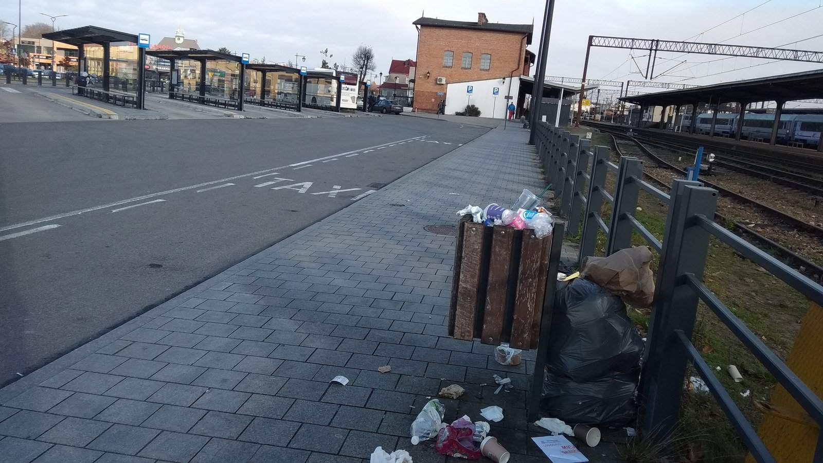 Przepełnione kosze na śmieci i sterty odpadów leżących na chodnikach – to częsty widok, jaki spotykają pasażerowie na Lęborskim Węźle Przesiadkowym przy ulicy Dworcowej. Taka sytuacja trwa już od dawna, a wszystkiemu winne ma być wstrzymanie ruchu pociągów na trasie Lębork – Słupsk i wprowadzenie autobusowej komunikacji zastępczej.
