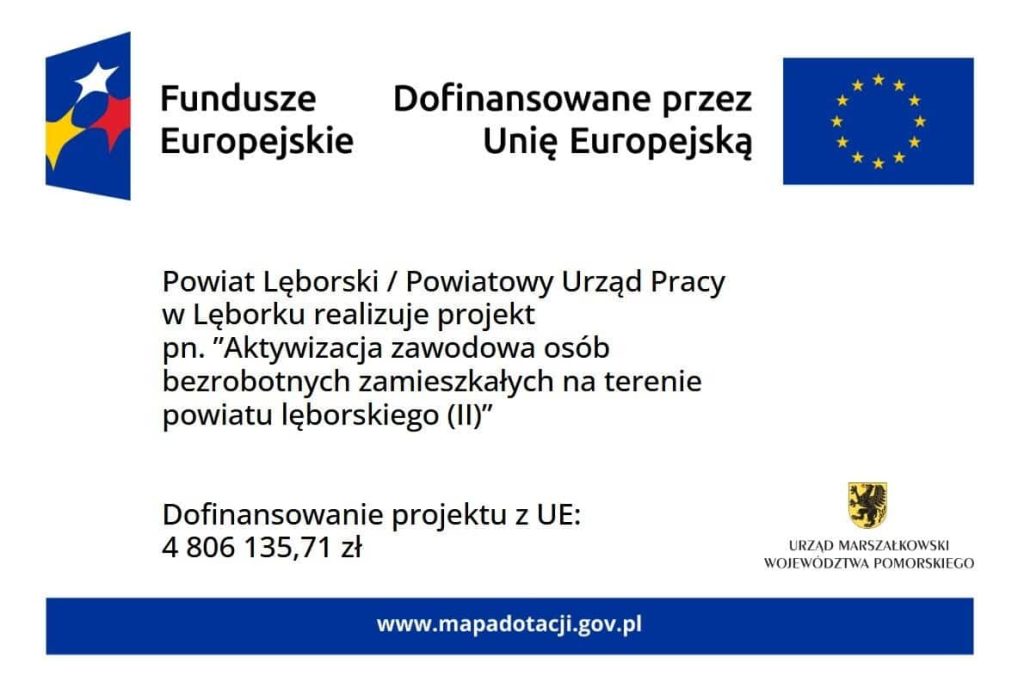 Szczegółowe informacje o projekcie są dostępne na stronie internetowej https://lebork.praca.gov.pl w zakładce Rynek pracy -> Programy aktywizacyjne i projekty urzędu.