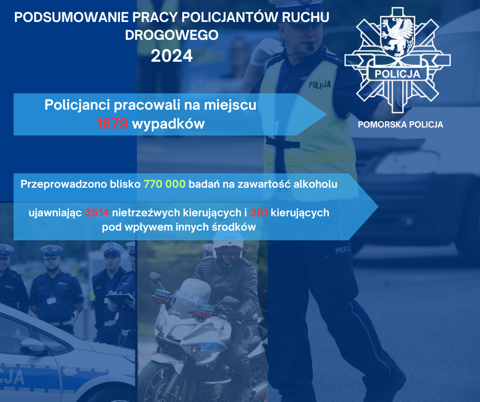 Pomorscy policjanci przeprowadzili niemal 770 tysięcy badań na zawartość alkoholu i blisko 1200 badań na obecność środków działających podobnie do alkoholu. Wynikiem było ujawnienie 3514 nietrzeźwych kierowców oraz 381 osób prowadzących pod wpływem innych substancji.