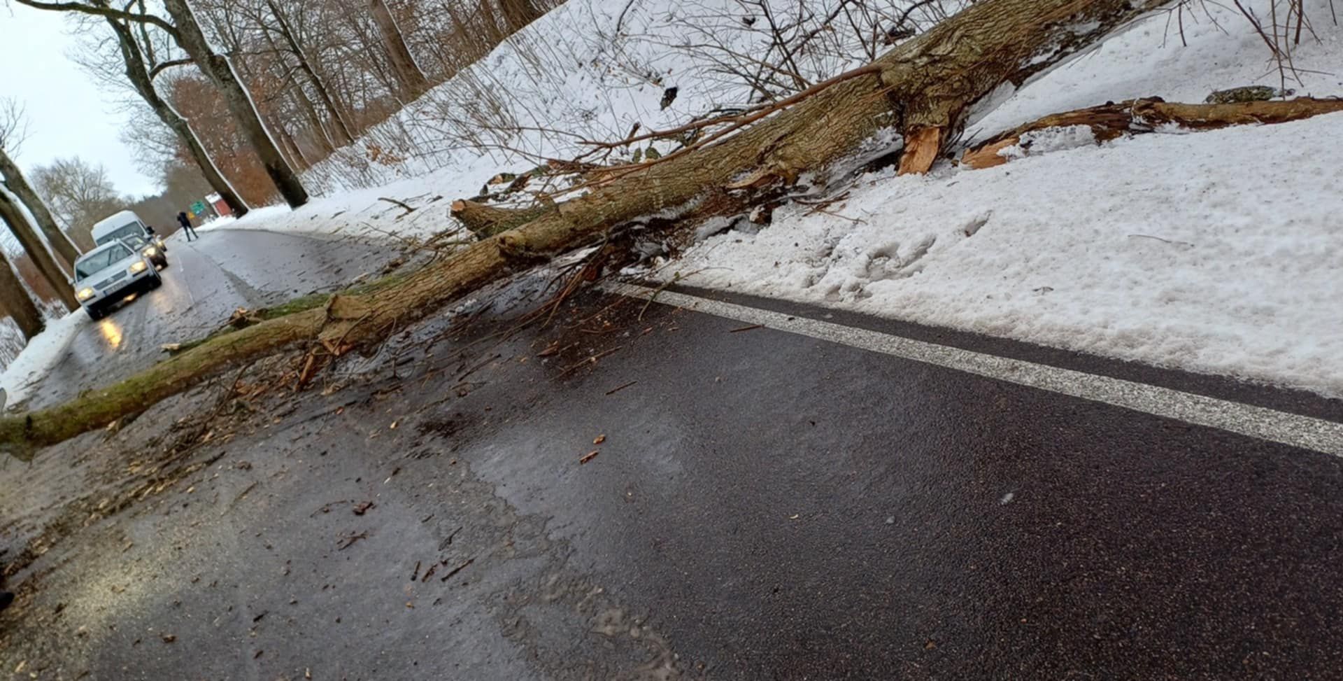 – Wyjeżdżaliśmy przede wszystkim do powalonych drzew, gałęzi i konarów, które blokowały przejazd na drogach – mówi st. kpt. Marcin Elwart, oficer prasowy KP PSP w Lęborku. – Takie zdarzenia miały głównie miejsce w gminie Cewice. W Bukowinie powalone drzewo było powodem kolizji samochodu osobowego. Sytuacja miała miejsce w sobotę, 11 stycznia, przed godziną 6:00 rano. Kilka podobnych zdarzeń miało miejsce na terenie gminy Nowa Wieś Lęborska. Np. w sobotę, dwa drzewa przewróciły się na DW 214 w Rybkach. W Lęborku nie było poważniejszych zdarzeń. Natomiast w Łebie doszło do cofki w kanale portowym, ale tam sytuacja jest już opanowana. Na miejscu działało głównie OSP i oficer operacyjny.