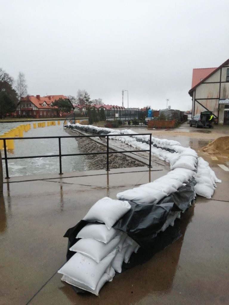 – W sobotę, 11 stycznia, około godziny 8:00 rano bosman portu w Łebie stwierdził przekroczenie stanu alarmowego rzeki Łeby o ponad 612 cm – mówi Sebastian Kluska, komendant OSP w Łebie. – W związku z tą cofką wystąpiło realne zagrożenie podtopienia budynków w porcie, w tym budynku, w którym znajduje się część pensjonatowo-hotelowa oraz magazyn sprzętu wodnego. Na miejsce skierowano strażaków z OSP Łeba i OSP Łebieniec, którzy ułożyli 750 worków z piaskiem w miejscu, gdzie przelała się woda. Dodatkowo sprawdzono kilka innych miejsc, gdzie doszło do lokalnych podtopień, np. na campingu Rafael w Łebie. Tam jednak ze względu na duży obszar zrezygnowano ze stawiania wałów przeciwpowodziowych.