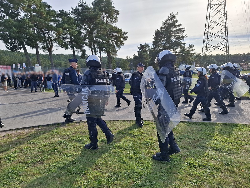 – Dzięki zaangażowaniu w zabezpieczenie odpowiednich sił i środków policyjnych, jak również dobremu rozpoznaniu oraz skutecznej wymianie informacji pomiędzy patrolami operacyjnymi i monitorującymi trasy przemieszczania się pseudokibiców, zarówno w obrębie stadionu, w mieście jak i na drogach dojazdowych, nie doszło do poważniejszych incydentów – mówi st. asp. Marta Szałkowska, oficer prasowy Komendy Powiatowej Policji w Lęborku. – W trakcie meczu na trybunach kibiców lęborskiej drużyny zostały odpalone race świetlne i petardy hukowe. Policjanci zarejestrowali te wykroczenia i już analizują nagrania pod kątem ustalenia osób za nie odpowiedzialnych.