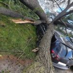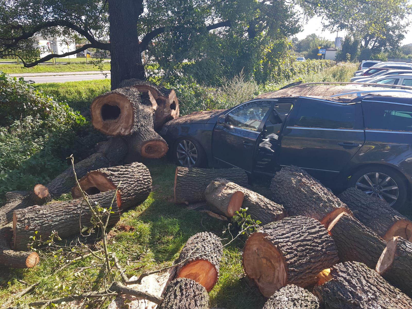 W poniedziałkowe przedpołudnie doszło do groźnie wyglądającego incydentu – jedno z drzew przewróciło się wprost na zaparkowany samochód osobowy.