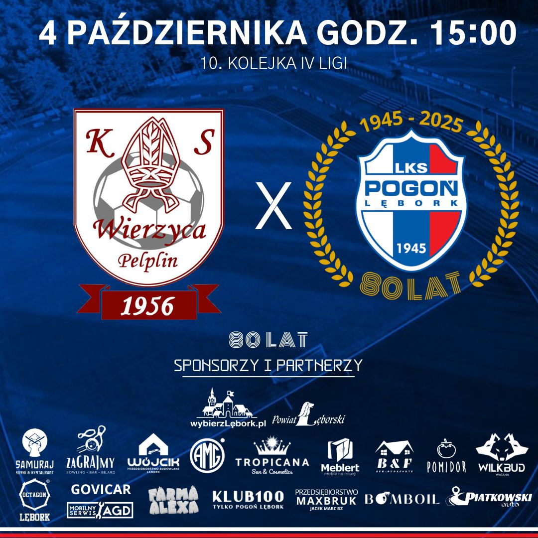 Piłkarze Pogoni Lębork przegrali w sobotę, 4 października, na wyjeździe z Wierzycą Pelplin 2:3 w meczu 10. kolejki rundy jesiennej IV ligi sezonu 2025/2026. To czwarta porażka lęborczan w tym sezonie.