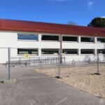 Hala została zaprojektowana z myślą o funkcjonalności i bezpieczeństwie. Główne wejście prowadzi bezpośrednio z łącznika ze szkołą, a dodatkowe wejście zewnętrzne pełni funkcję ewakuacyjną.