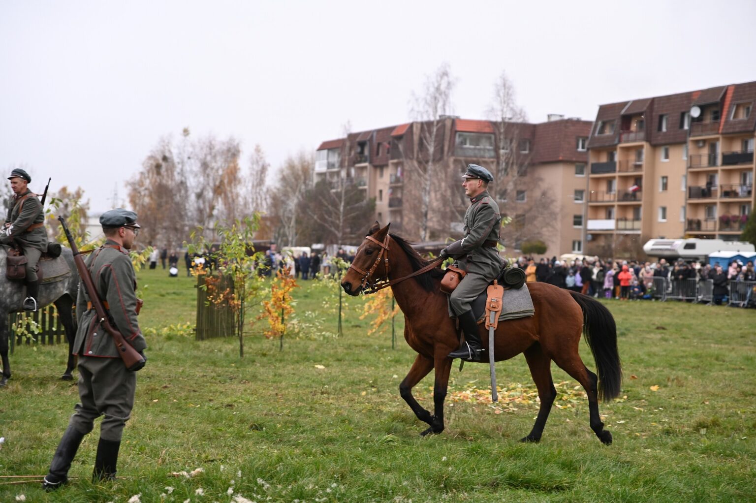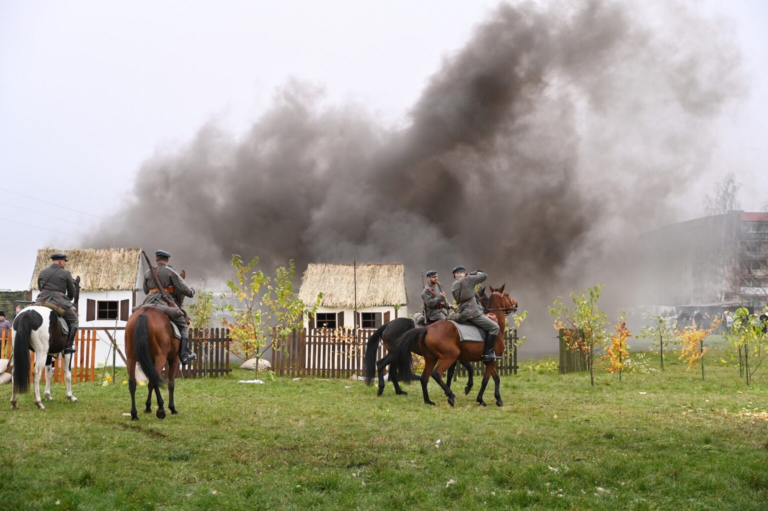 Plenerowa inscenizacja pt. „Nie złożyli broni” przeniesie publiczność w dramatyczne realia roku 1939 i 1940, kiedy mimo kapitulacji, wielu żołnierzy nie pogodziło się z utratą wolności i kontynuowało walkę o niepodległą Polskę. Z chaosu bitewnego wyłoni się polska kawaleria – symbolem nieugiętej postawy wobec okupanta.