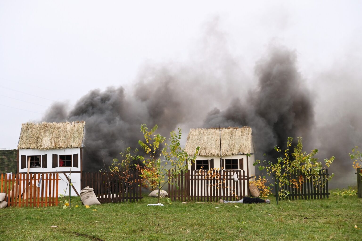 Główna część widowiska, trwająca około 40 minut, rozpocznie się dynamicznie – efekty pirotechniczne, potężne eksplozje i gęste zadymienie wprowadzą widzów w atmosferę końca września 1939 roku, kiedy regularne walki dogasały, a Niemcy zajmowali kolejne tereny Polski. Inscenizację poprowadzi narrator i jednocześnie autor scenariusza Jerzy Hanisz.