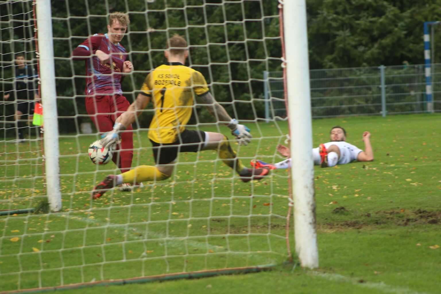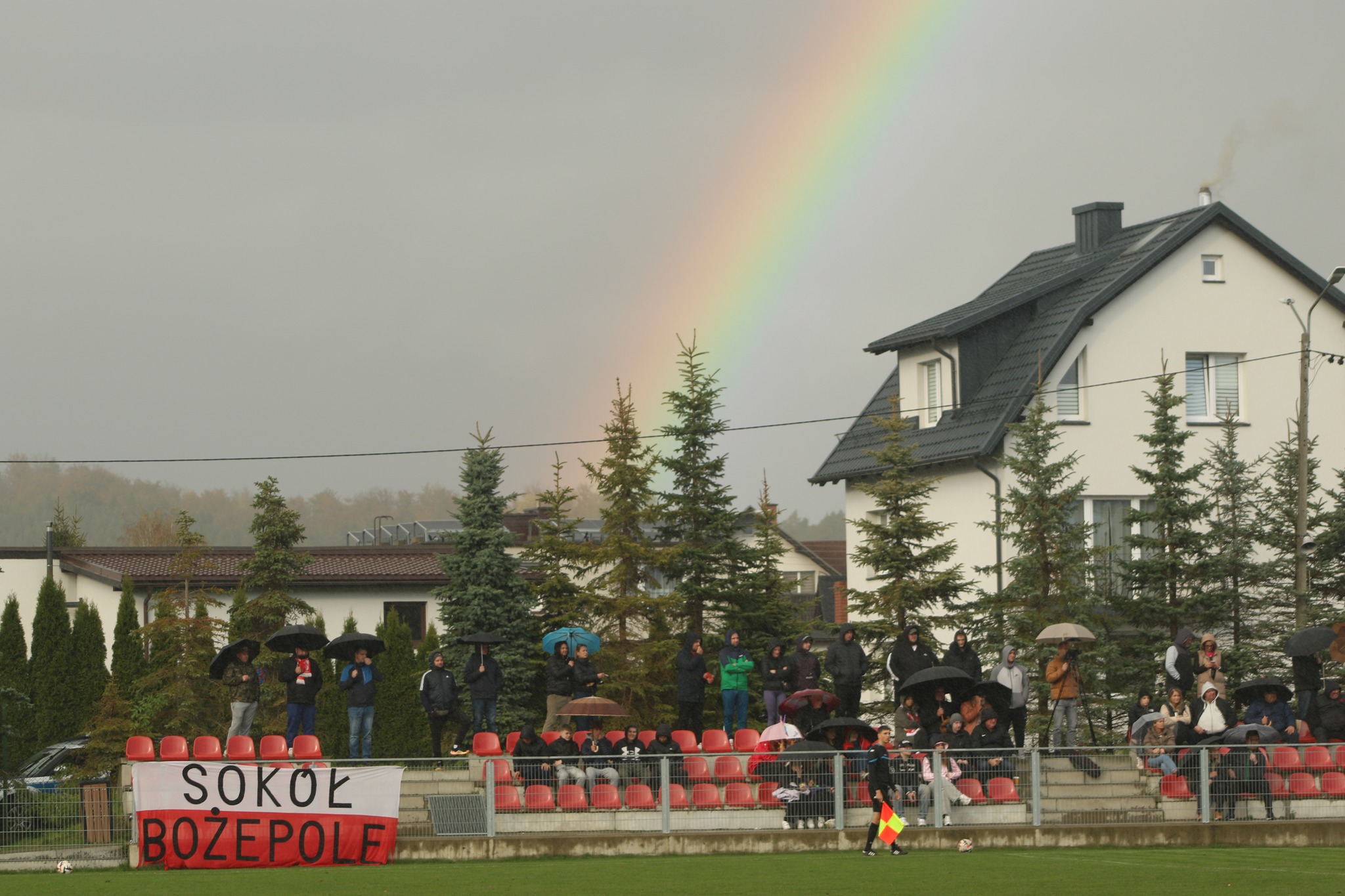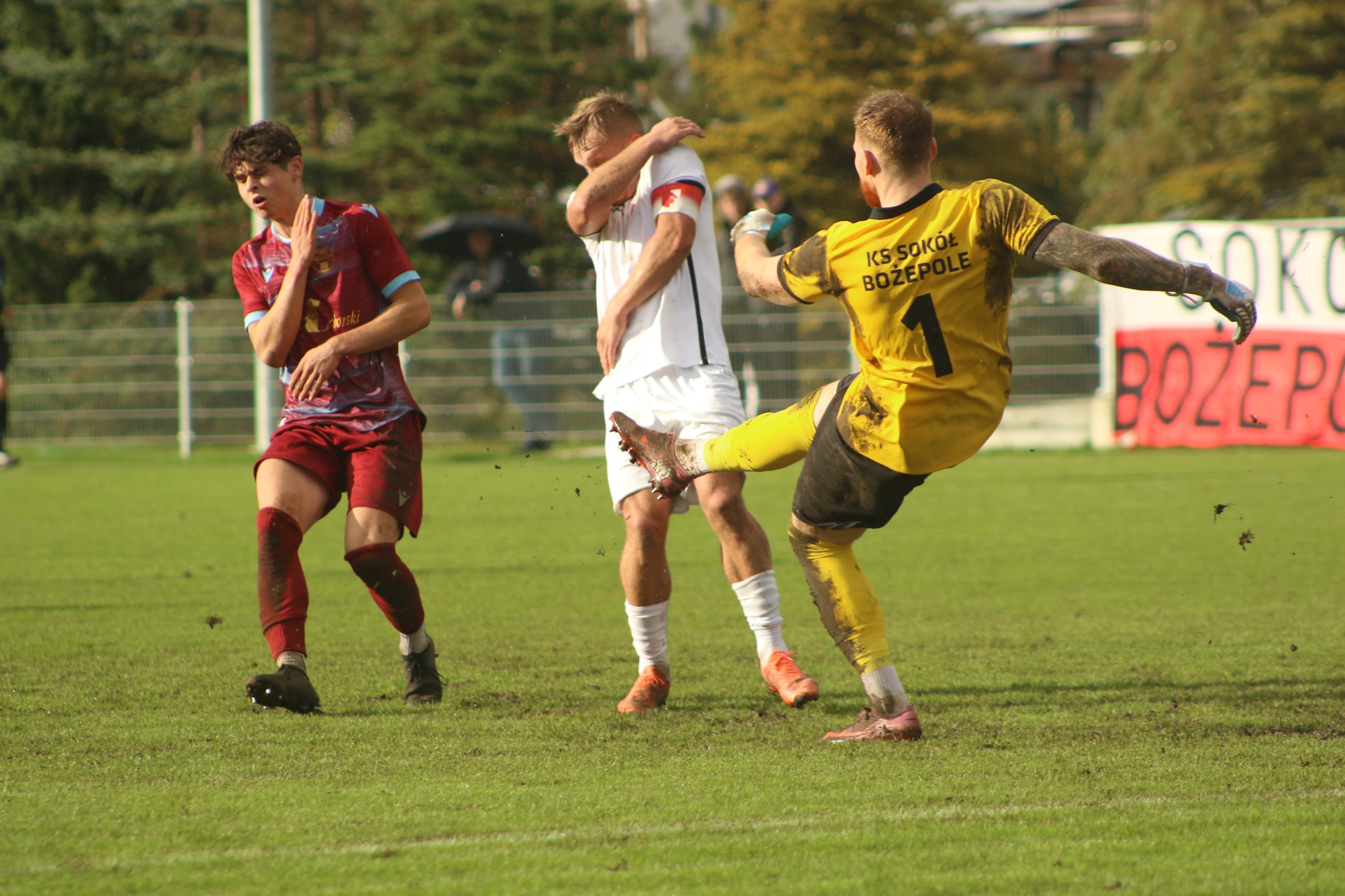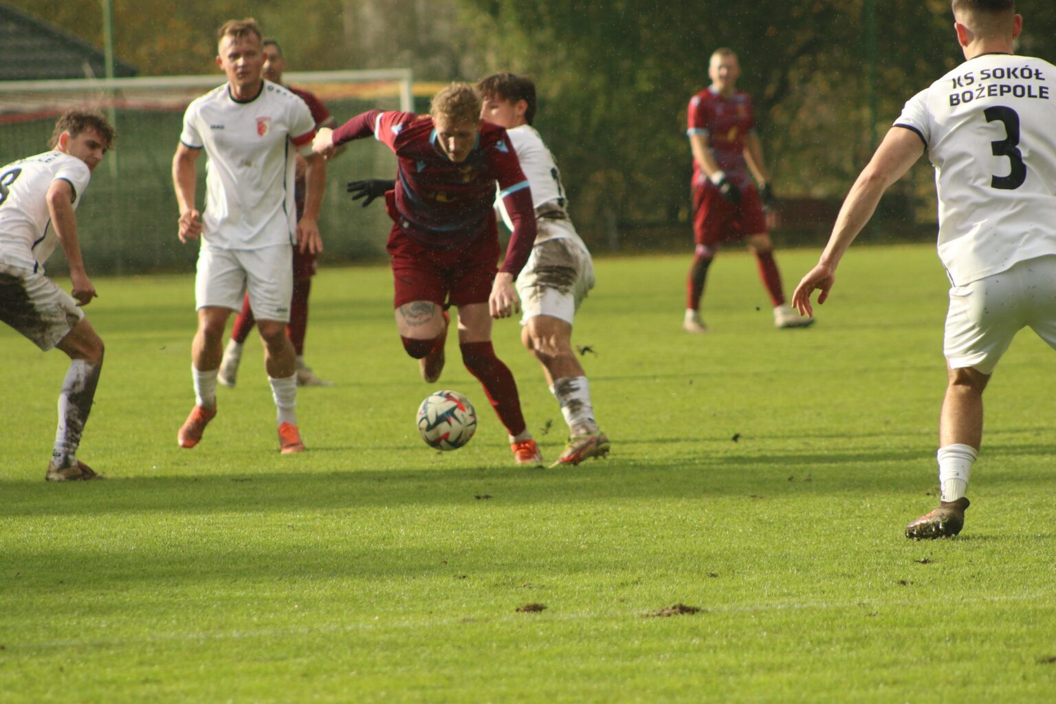 Ciężkie, nasiąknięte wodą boisko, przelotne deszcze, a w końcówce prawdziwa ulewa – mimo to Pogoniści pokazali charakter i wracają z meczu w Bożepolu Wielkim z cennym kompletem punktów.