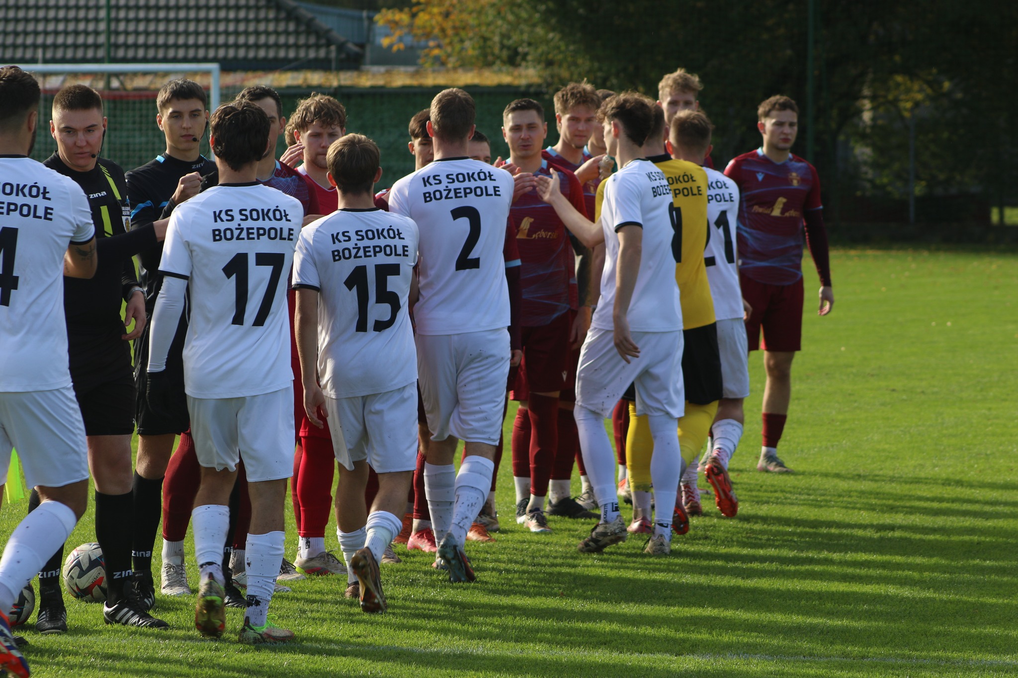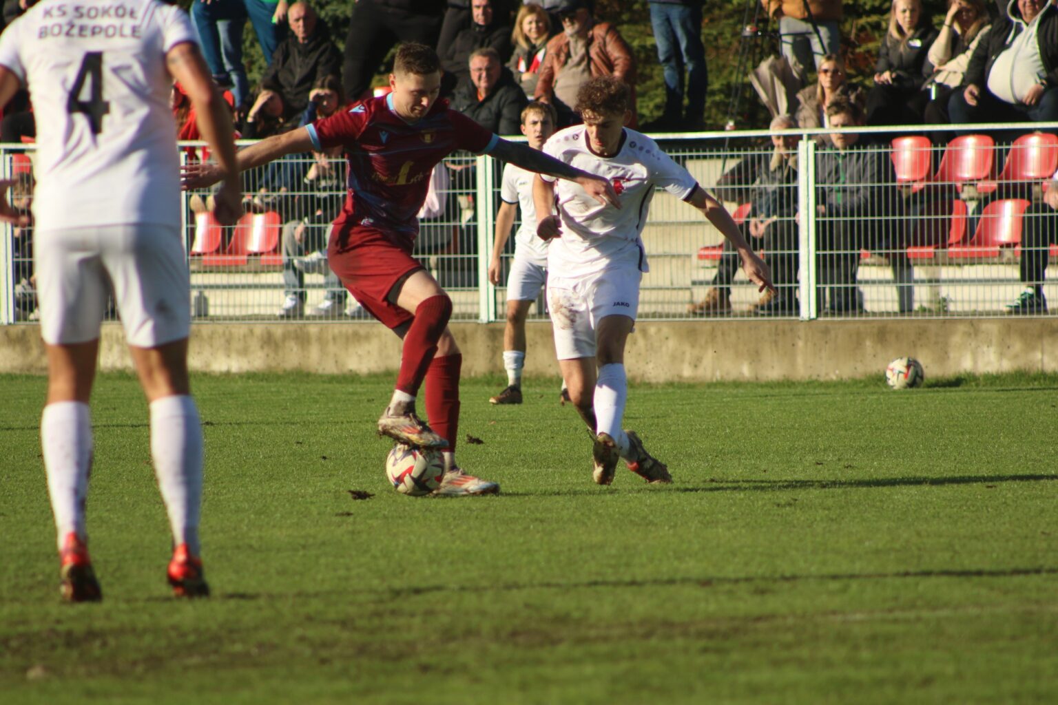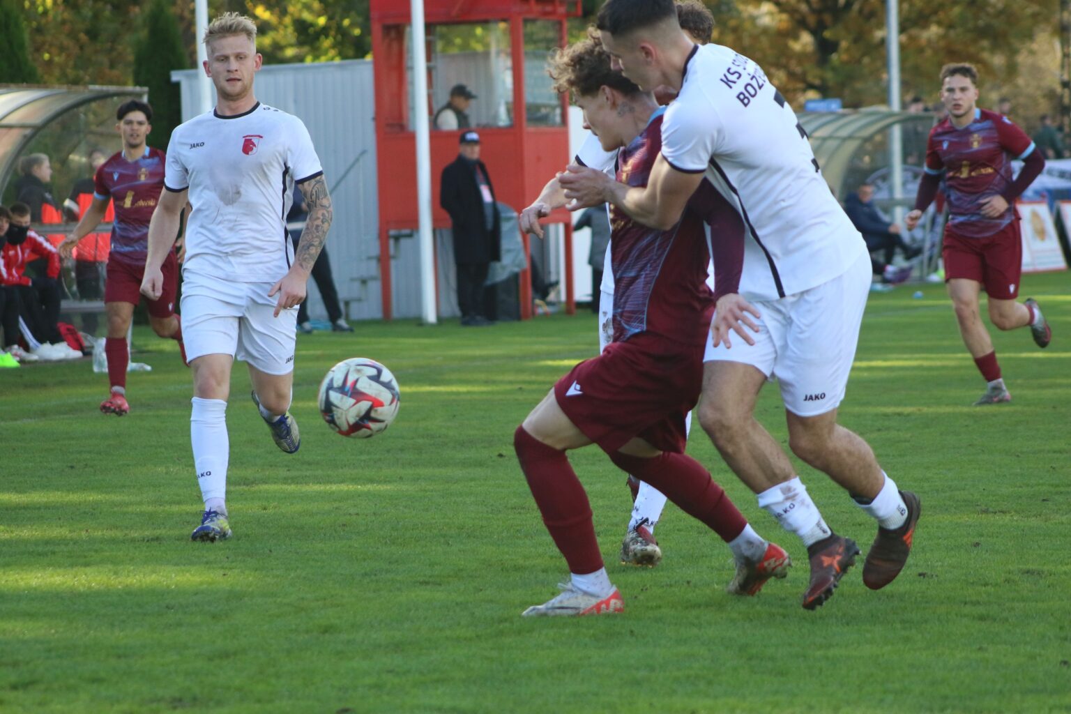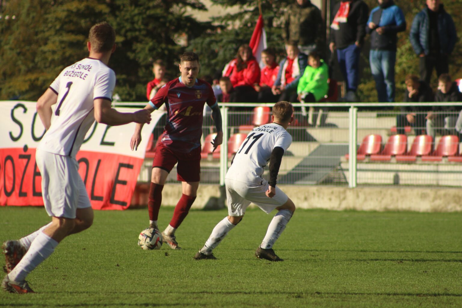 Ciężkie, nasiąknięte wodą boisko, przelotne deszcze, a w końcówce prawdziwa ulewa – mimo to Pogoniści pokazali charakter i wracają z meczu w Bożepolu Wielkim z cennym kompletem punktów.