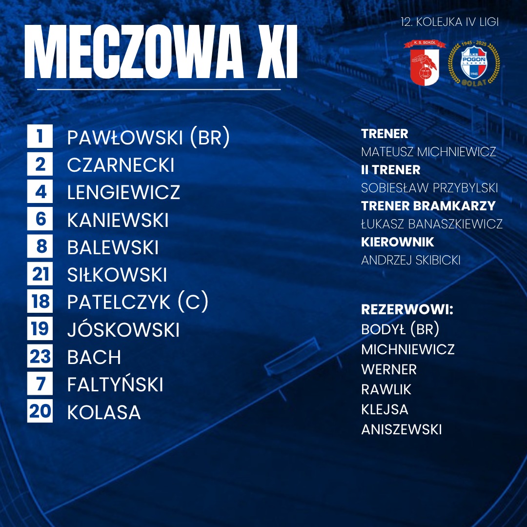 Pogoń: Pawlowski – Czarnecki, Lengiewicz, Kaniewski, Balewski, Siłkowski, Patelczyk, Jóskowski (’82 Werner), Bach, Faltyński, Kolasa (’82 Michniewicz)