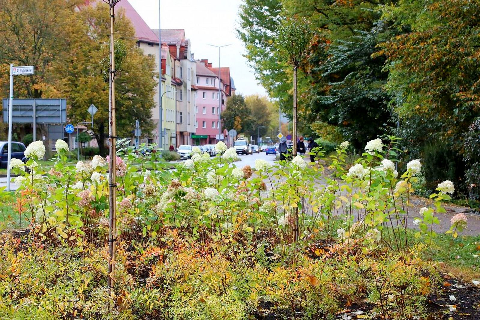 Nowe nasadzenia znajdziemy także na wysepkach od alei Niepodległości, alei Wolności i ulicy Staromiejskiej przy galerii Delfino. To trzy różne gatunki hortensji, trzy dekoracyjne wiśnie, 21 sztuk jałowca. Klon kulisty ma gęstą, regularną koronę, która nie wymaga formowania, jest bardzo odporny na choroby, szkodniki i zanieczyszczenia powietrza.