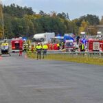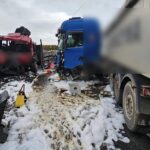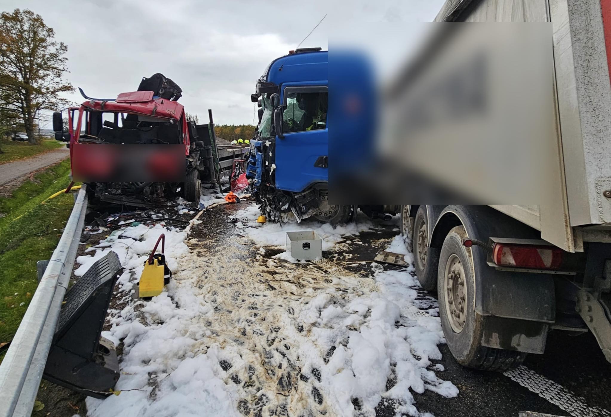 Do zdarzenia doszło w piątek, 24 października, około godziny 15:00. Zderzyły się trzy samochody ciężarowe i jeden samochód osobowy. Na miejscu pracują policjanci, którzy zabezpieczają teren zdarzenia i ustalają okoliczności wypadku.