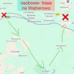 W przeciwnym kierunku (kierowcy jadący z Wejherowa w kierunku do Lęborka) – ruch odbywa się objazdem przez Bożepole Wielkie – Chmieleniec – Łęczyce, a następnie do Lęborka.