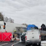 Ruch samochodów ciężarowych będzie odbywał się wahadłowo tylko na wyłączonym odcinku drogi – w miejscu wypadku, pod nadzorem policjantów.