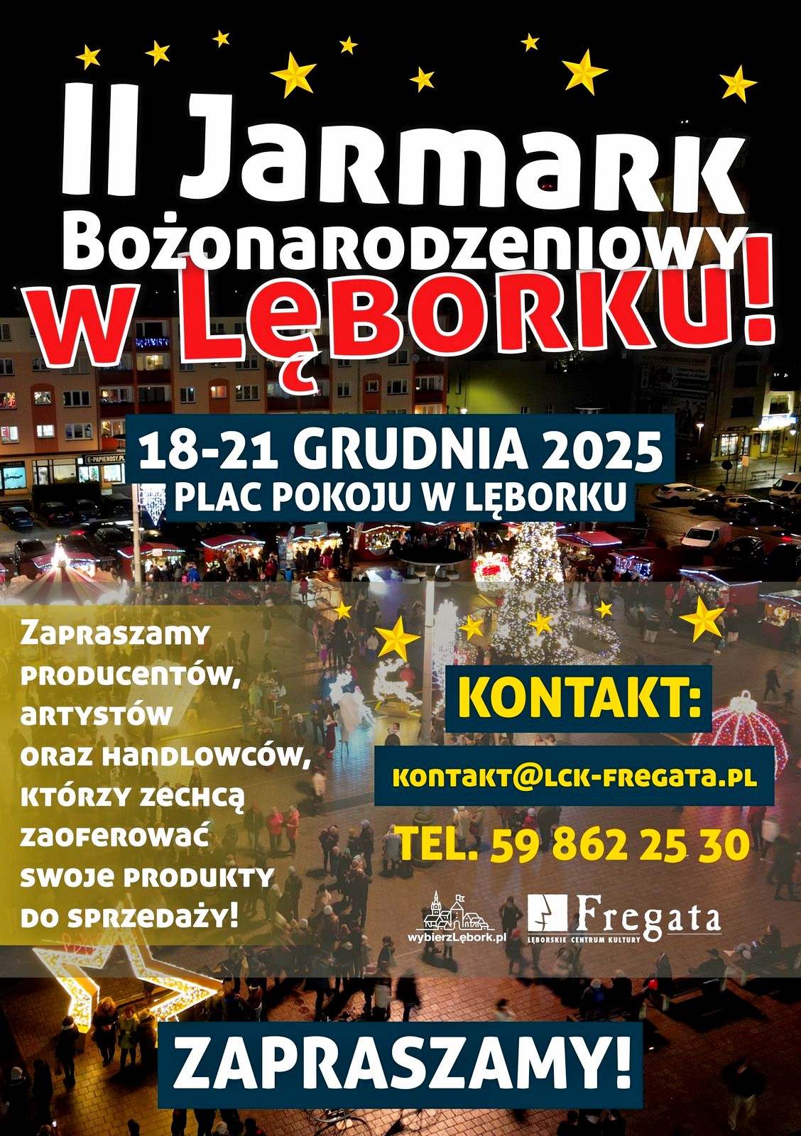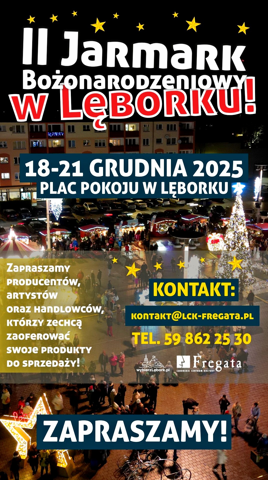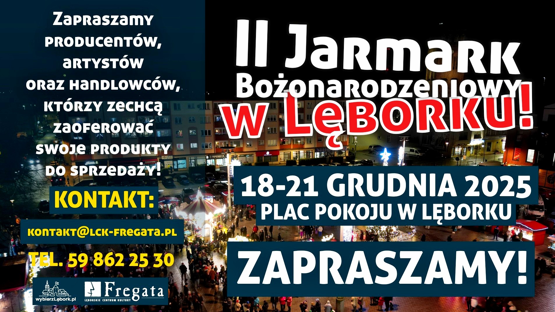 – Zapraszamy zainteresowanych wystawców, przedsiębiorców, twórców ludowych, firmy, organizacje i instytucje do wzięcia udziału i skorzystania z możliwości sprzedaży swoich wyrobów podczas II Jarmarku Bożonarodzeniowego w Lęborku – zachęca Lęborskie Centrum Kultury Fregata.