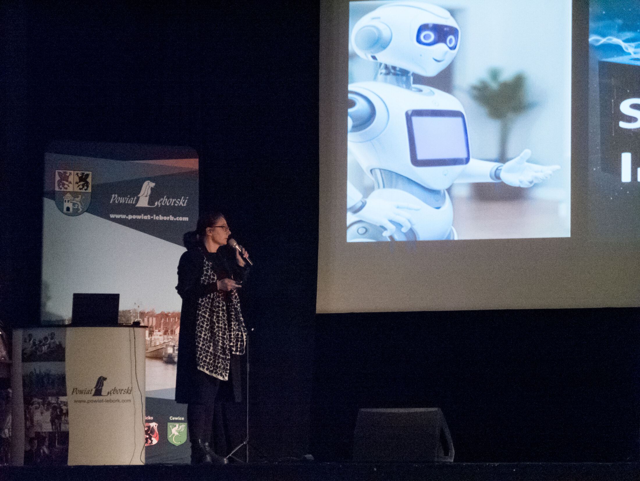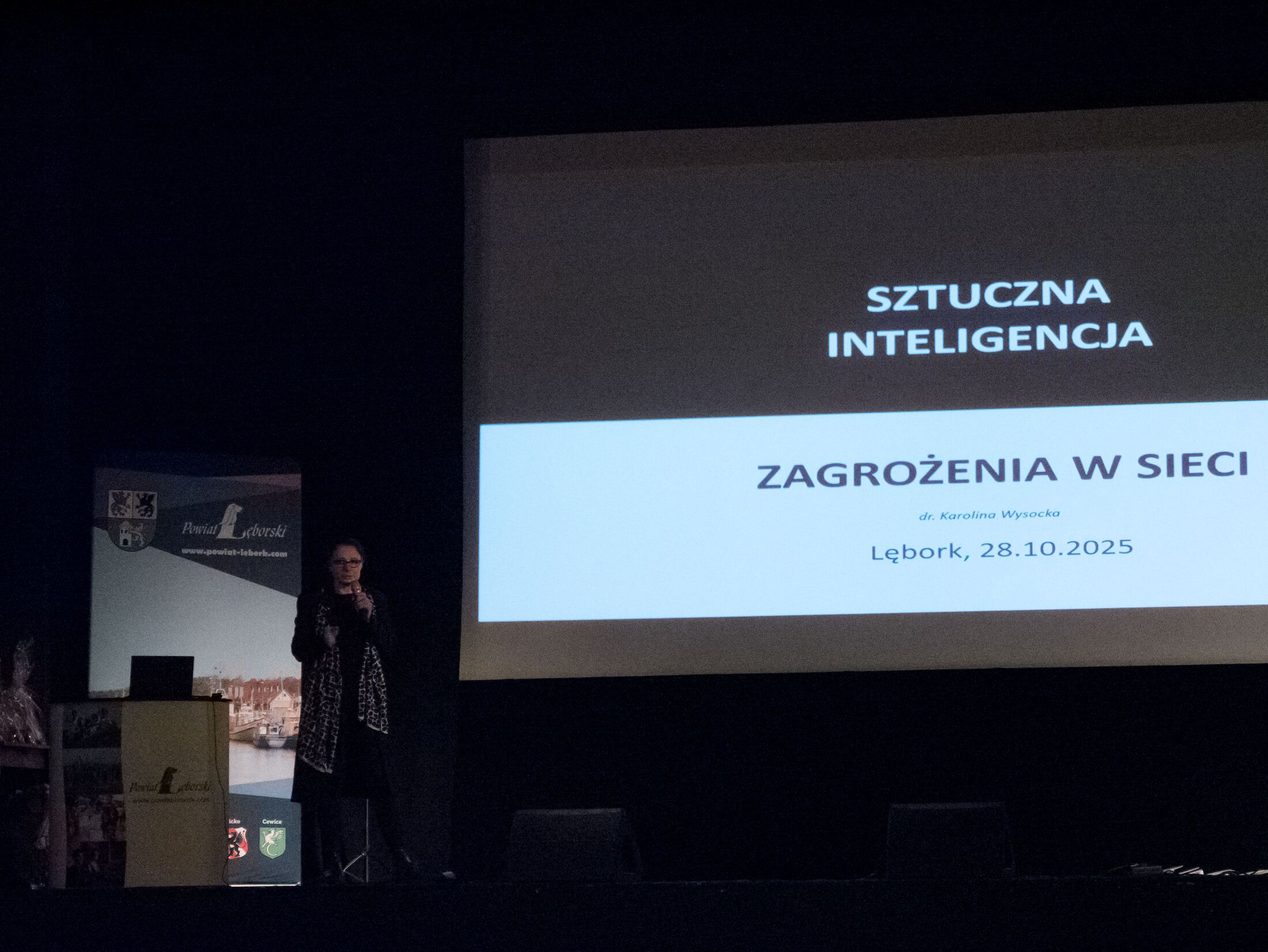 Dr Karolina Wysocka skupiła się na tematyce zagrożeń pojawiających się wraz z rozwojem nowoczesnych technologii i informacyjnych interakcji przy użyciu środków komunikacji elektronicznej. Wykład „Sztuczna inteligencja – niebezpieczeństwo w sieci” dotyczył najnowszych zagrożeń związanych z dezinformacją, deepfake’ami i cyberoszustwami oraz zawierał zbiór prostych zasad, które każdy może zastosować, by lepiej chronić swoje dane i tożsamość w sieci (sprawdzanie źródeł, ostrożność przy linkach i załącznikach, silne hasła).