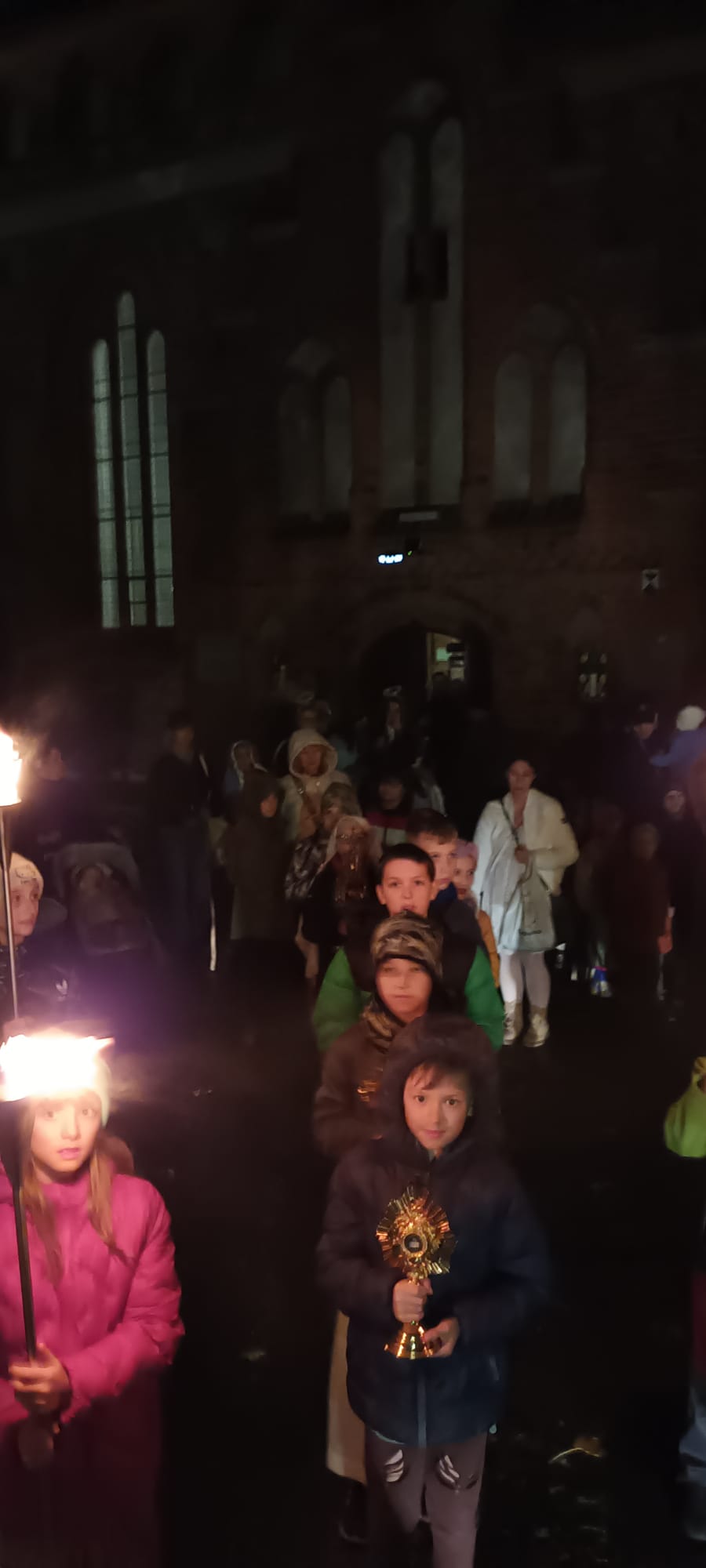 O godzinie 17:00 ulicami Lęborka z sanktuarium do auli ZSMI wyruszy korowód świętych z relikwiami, a uczestnicy będą śpiewać radosne pieśni, w tym m.in. słynny utwór Arki Noego „Święty uśmiechnięty (Taki duży, taki mały)” przy akompaniamencie gitary, na której zagra główny inicjator balu – franciszkanin o. Mateusz Świętosławski.