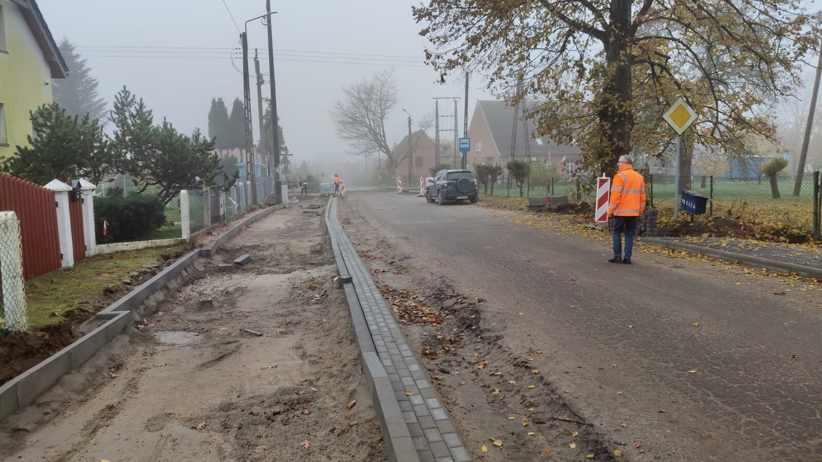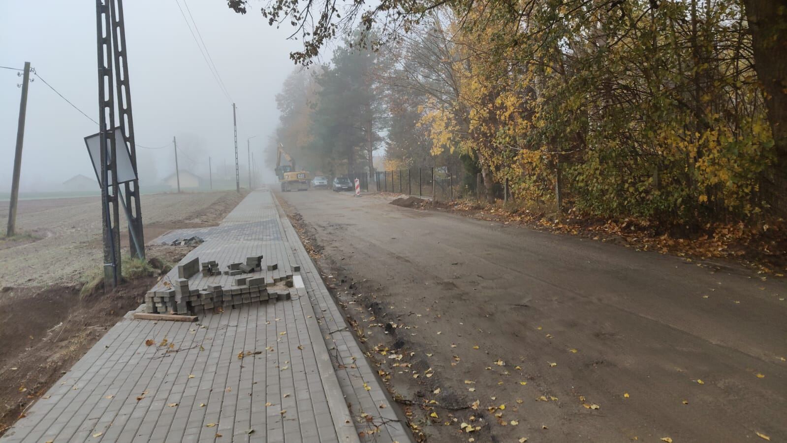 Mieszkańcy już niedługo zyskają bezpieczniejszą i bardziej komfortową drogę w miejscowości Gęś. Prace weszły w finałową fazę.
