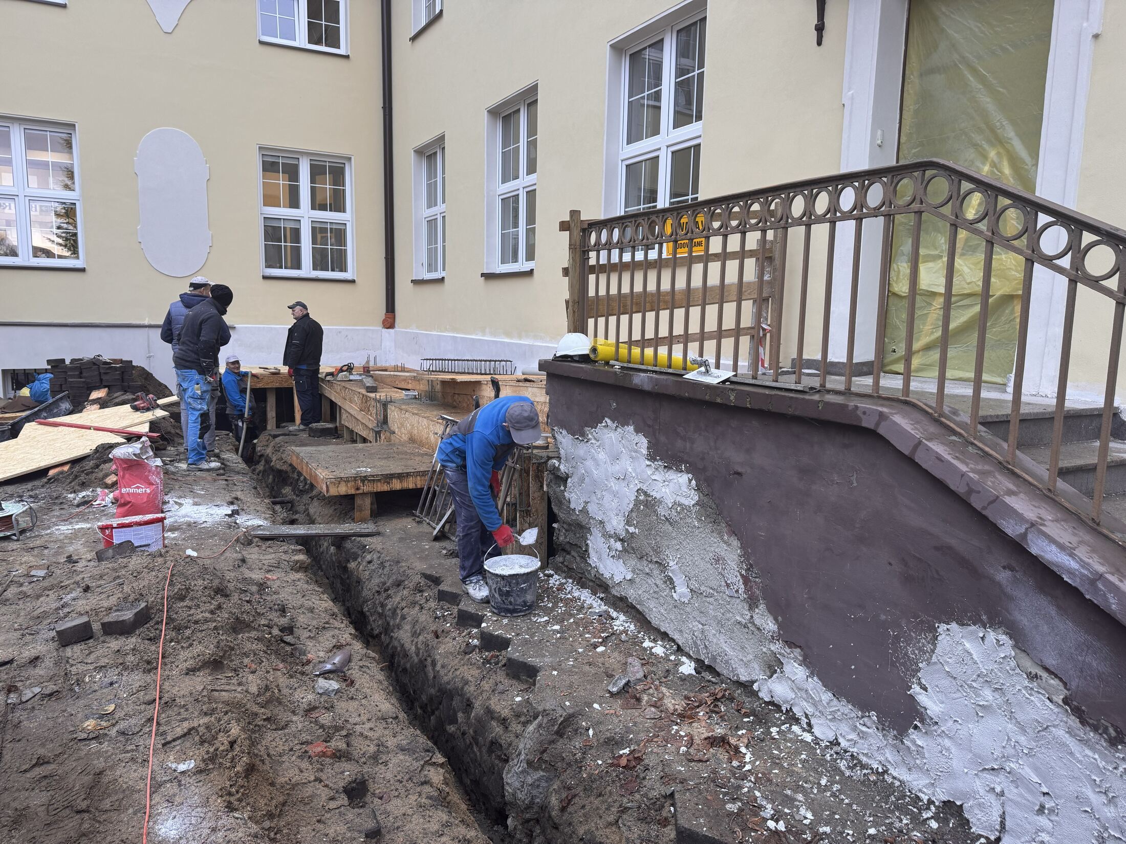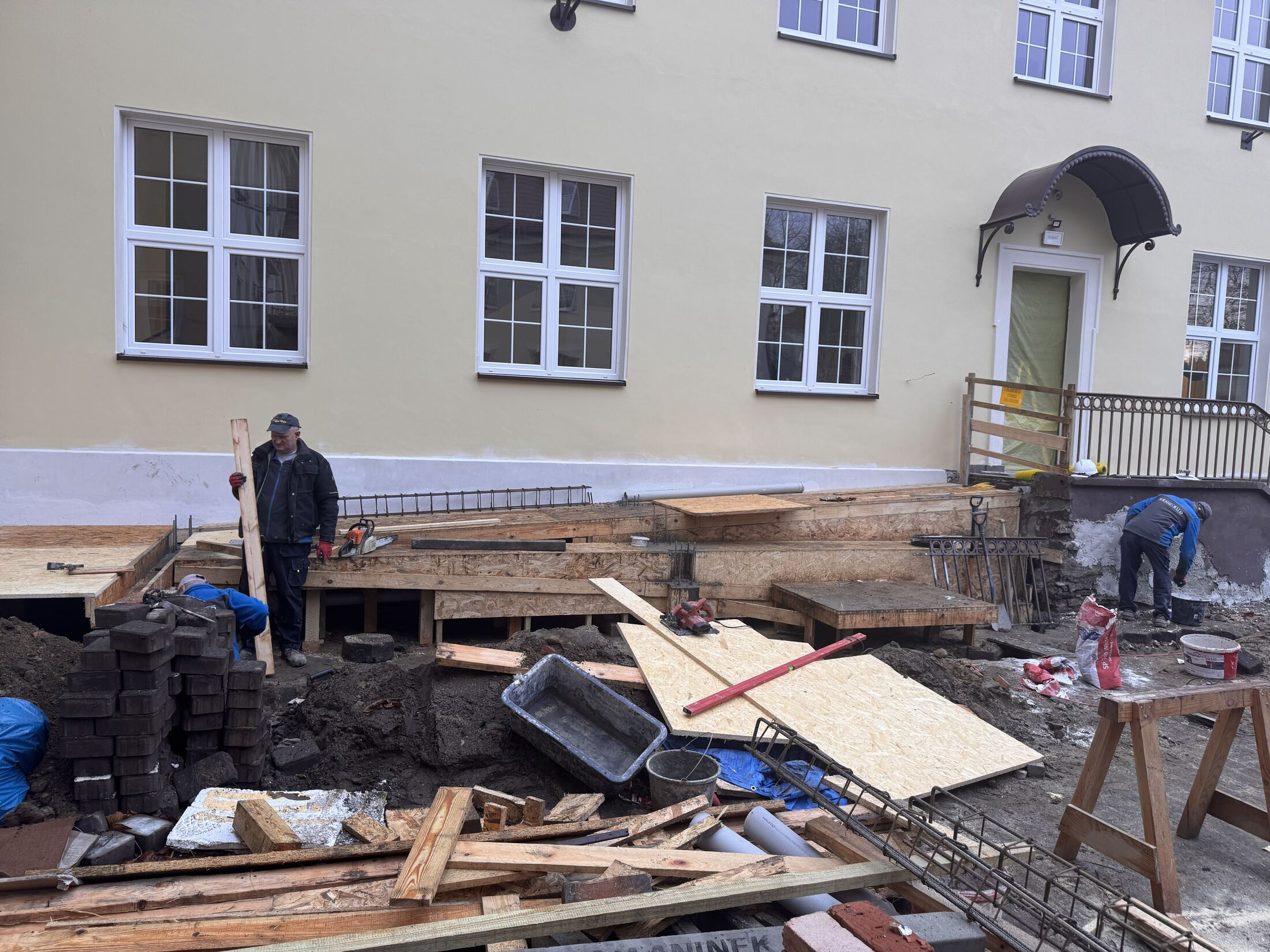 Równolegle modernizowana jest rampa prowadząca do głównego holu. Po zakończeniu prac stanie się ona znacznie bardziej funkcjonalna i dostosowana do potrzeb osób z niepełnosprawnościami. Postęp robót można obserwować na dziedzińcu starostwa, a ich finał zaplanowano na 19 grudnia.