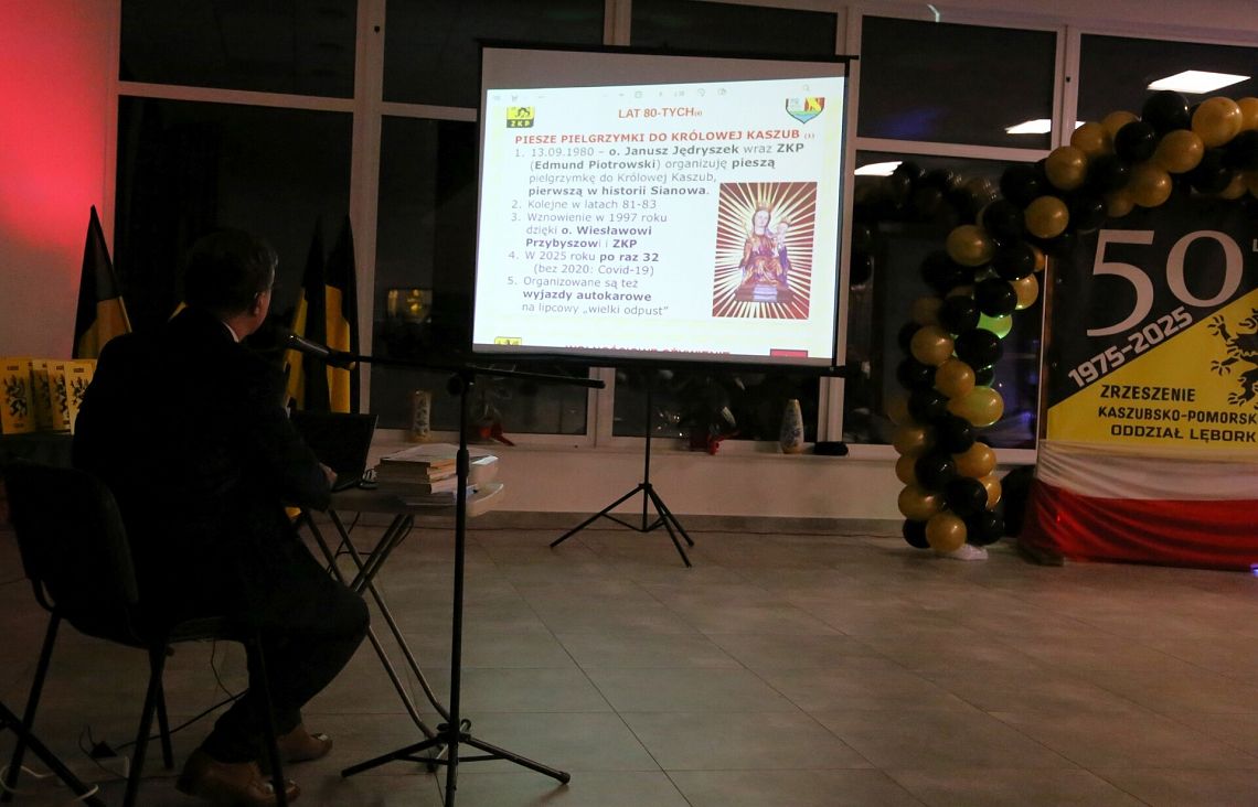 Podczas spotkania obecny prezes ZKP Ryszard Wenta przedstawił historię lęborskiego oddziału, ilustrując ją prezentacją. Początki aktywności kaszubskich działaczy w Lęborku sięgają lat 60., kiedy należeli do oddziału w Gdańsku. W 1971 roku powstało lęborskie koło zrzeszenia, a 1 października 1975 roku formalnie utworzono samodzielny oddział. Jego pierwszym prezesem został Stefan Fikus – pasjonat kaszubszczyzny i regionalnej historii, o którym szerzej mówił w swojej prelekcji dr Eugeniusz Pryczkowski.
