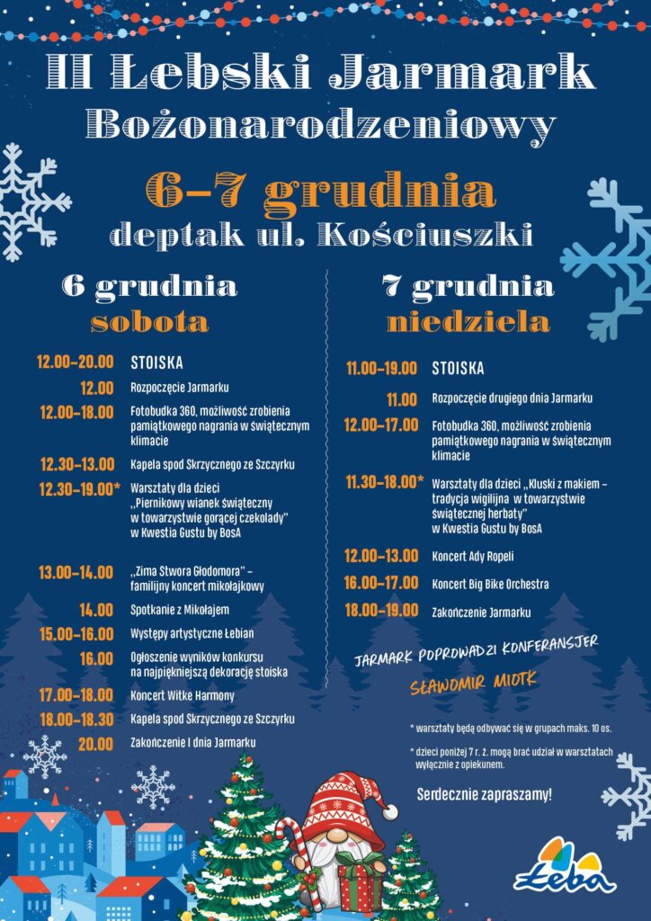 - W nadmorskiej Łebie w dniach 6–7 grudnia odbędzie się II Łebski Jarmark Bożonarodzeniowy – pełen stoisk, dekoracji, koncertów i atrakcji dla dzieci i dorosłych.