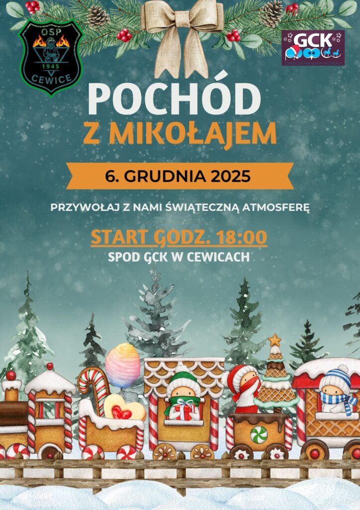 - W Cewicach na 6 grudnia zaplanowano pochód z Mikołajem – tradycyjny przemarsz z udziałem najmłodszych i mieszkańców, który wprowadzi w świąteczny nastrój. Natomiast 7 grudnia kiermasz świąteczny w GCK Cewice.