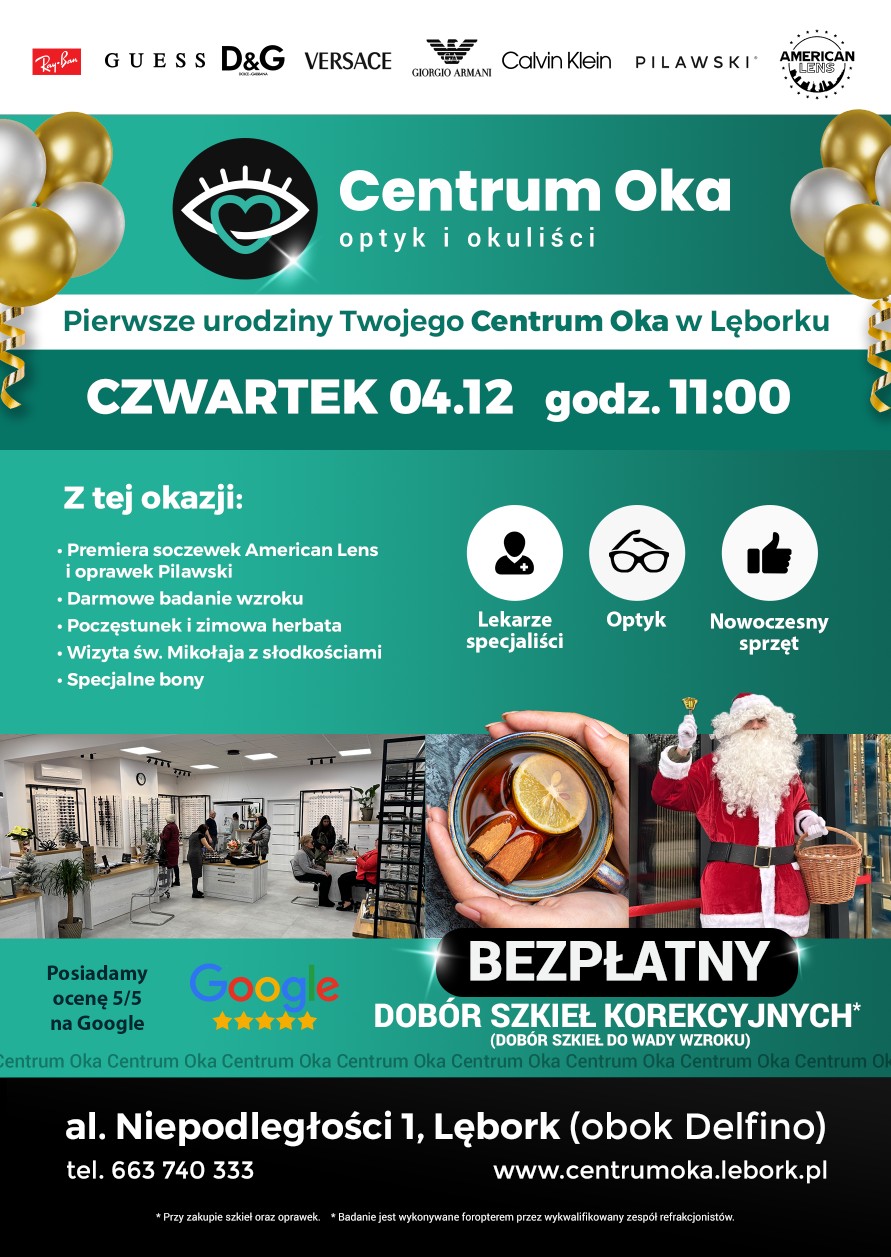 - Centrum Oka w Lęborku przy al. Niepodległości 1, 4 grudnia odwiedzi święty Mikołaj z słodkościami.