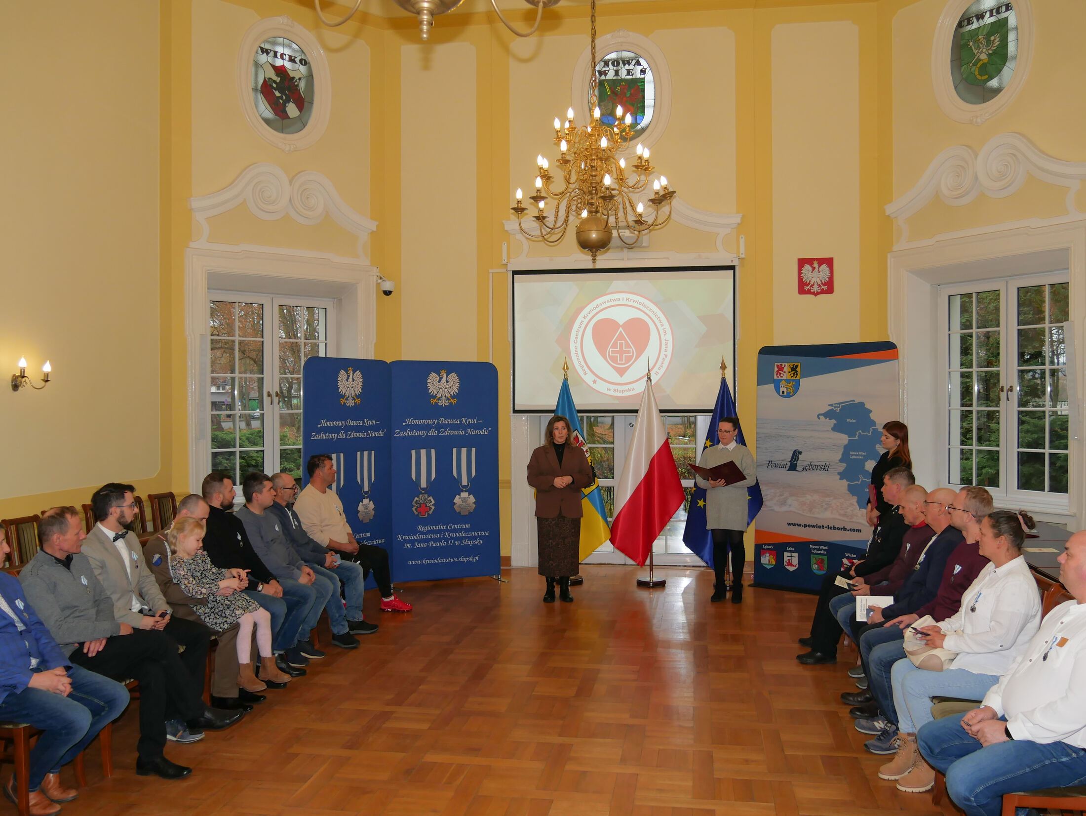 Piętnaścioro krwiodawców z powiatu lęborskiego, którzy oddali co najmniej 20 litrów krwi, zostało wyróżnionych odznaczeniami „Honorowy Dawca Krwi – Zasłużony Dla Zdrowia Narodu” przyznanymi przez ministra zdrowia. Uroczystość ich wręczenia odbyła się w Starostwie Powiatowym w Lęborku.
