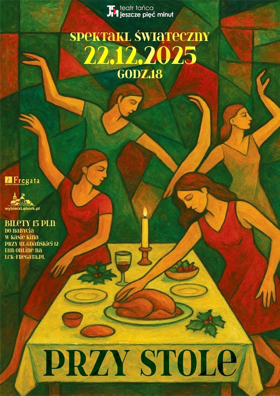 W poniedziałek, 22 grudnia, w Lęborskim Centrum Kultury Fregata odbędzie się premierowy spektakl świąteczny pod tytułem „Przy stole” w wykonaniu Teatru Tańca Jeszcze Pięć Minut. Początek wydarzenia o godzinie 18:00.