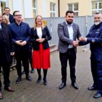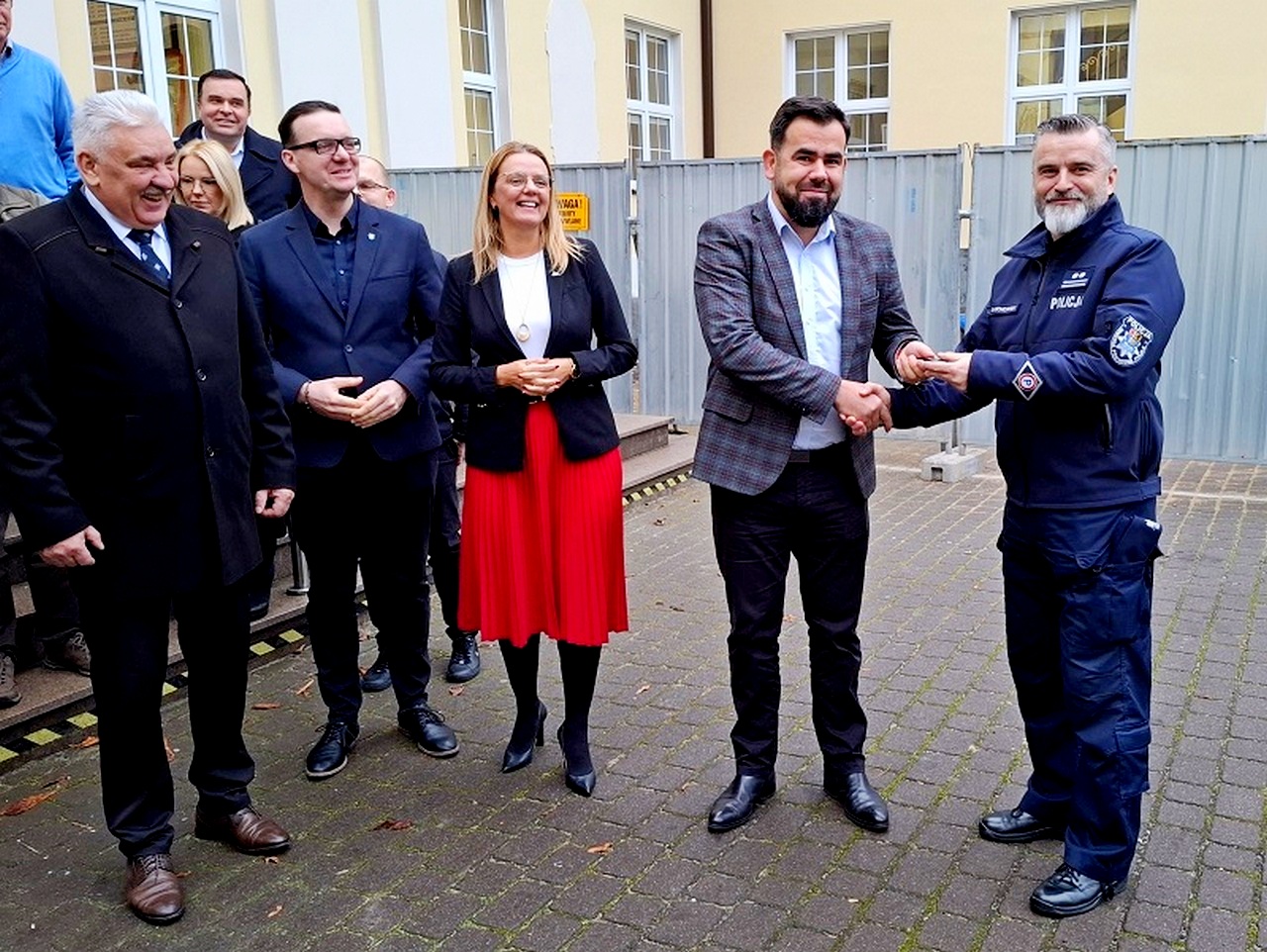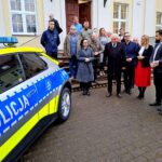 Starosta powiatu lęborskiego Tomasz Litwin w obecności przedstawicieli samorządów z Lęborka, Łeby, gmin Cewice i Nowa Wieś Lęborska, symbolicznie przekazał nowy pojazd służbowy komendantowi powiatowemu policji w Lęborku mł. insp. Leszkowi Głuchowskiemu.
