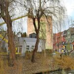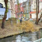 Przy rzece Łebie w Lęborku trwało dziś przycinanie gałęzi rosnących tam drzew. Akcję prowadzono na zlecenie Państwowego Gospodarstwa Wodnego Wody Polskie. Zgodnie z obowiązującymi w Polsce przepisami nie można usuwać więcej gałęzi niż 30 procent korony drzewa.