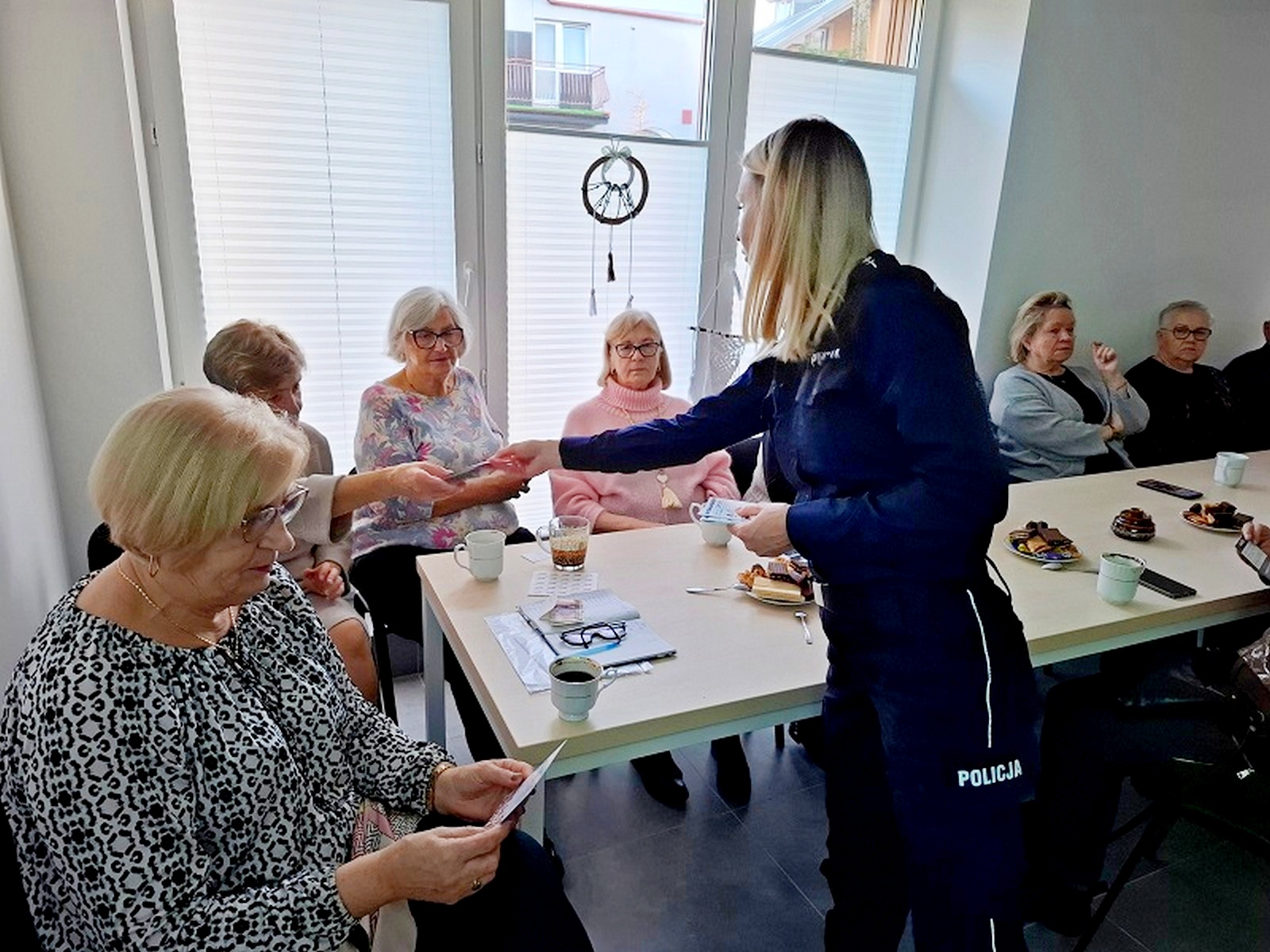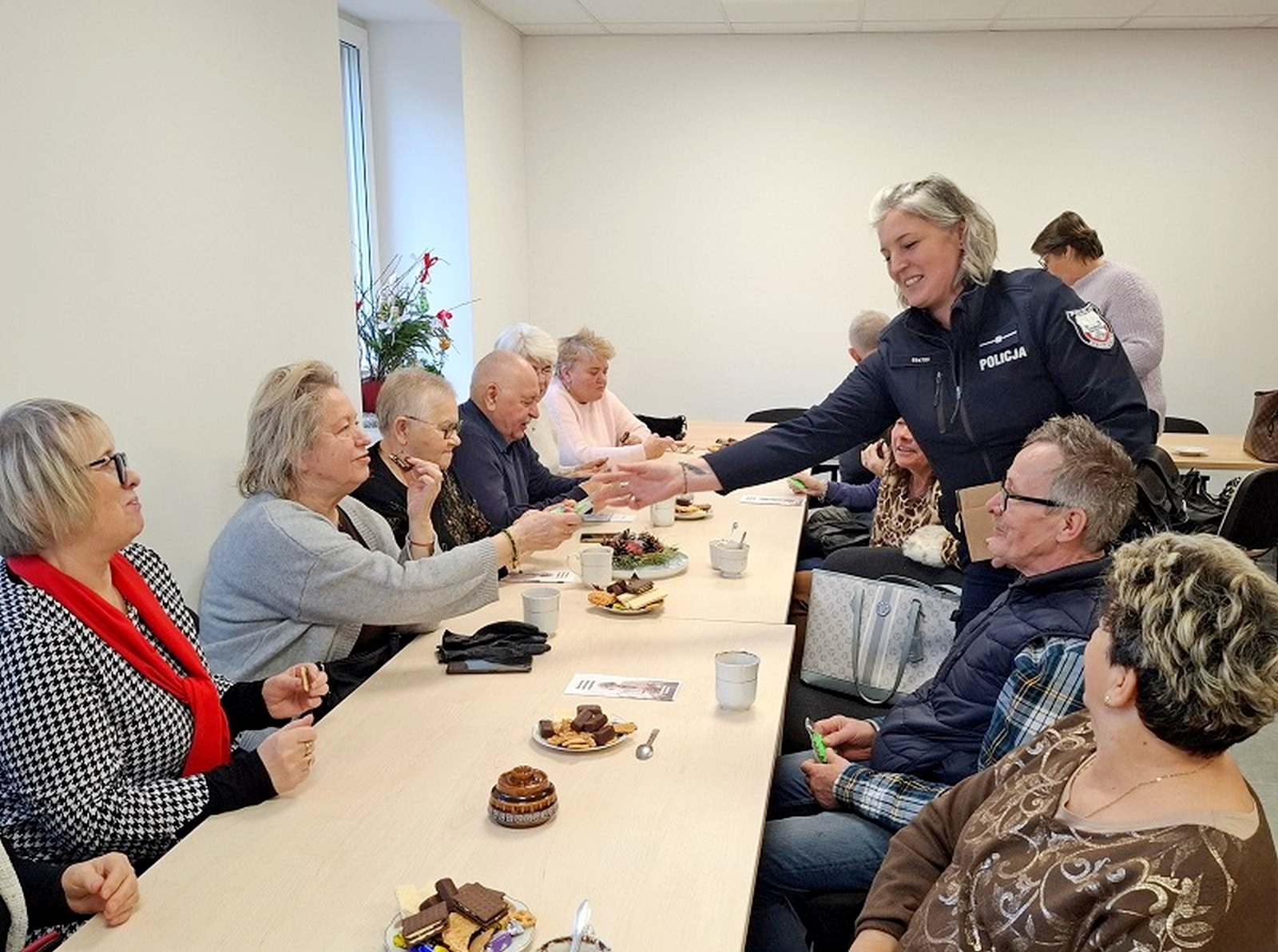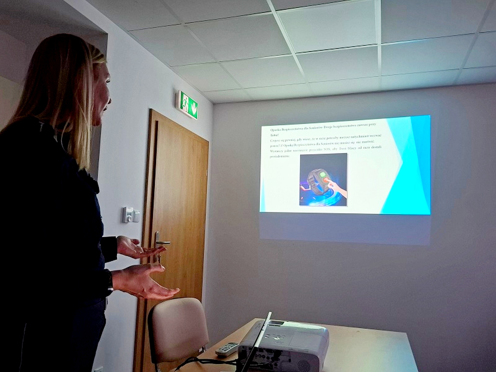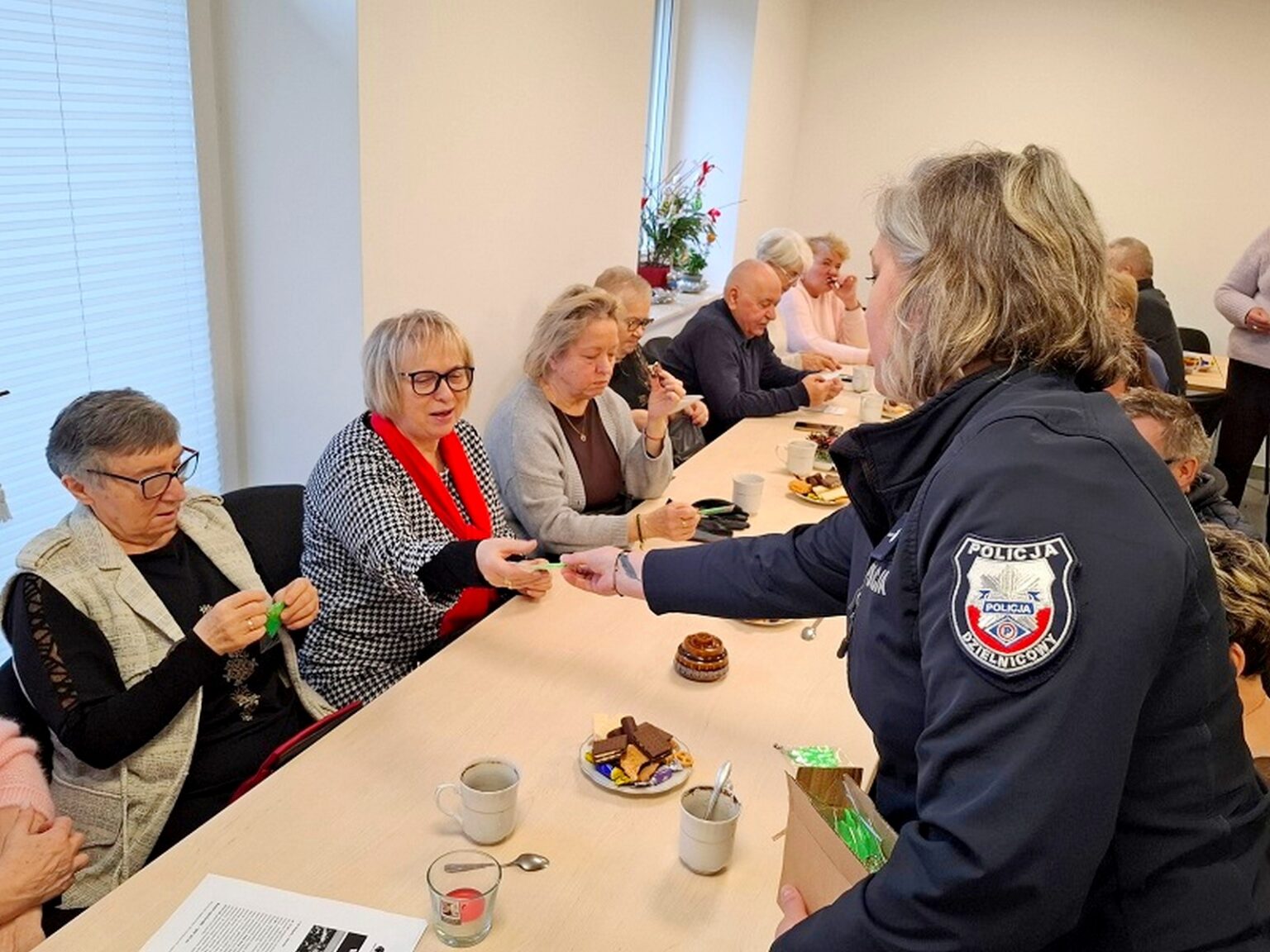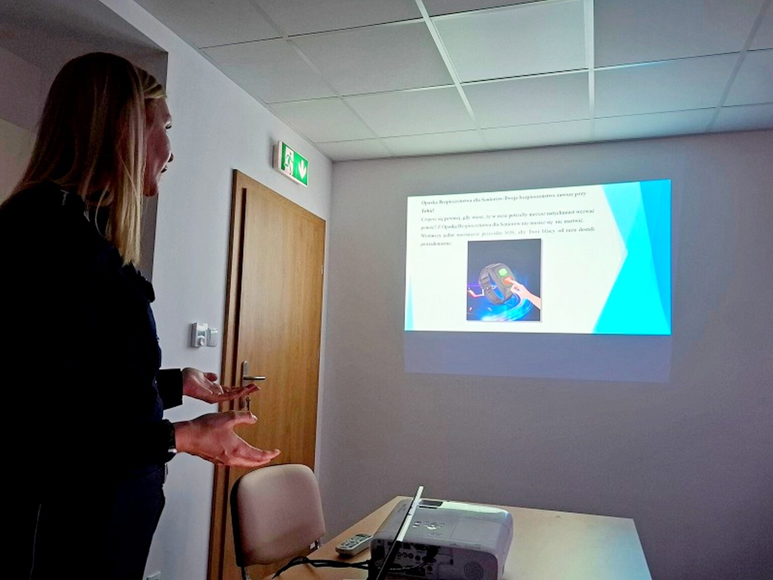 – Policjantka przedstawiła też korzyści płynące z korzystania z opasek bezpieczeństwa dla seniorów, dzięki którym starsze osoby mogą poczuć się pewniej, wiedząc, że w każdej chwili mogą wezwać pomoc – oznajmia asp. sztab. Marta Szałkowska.