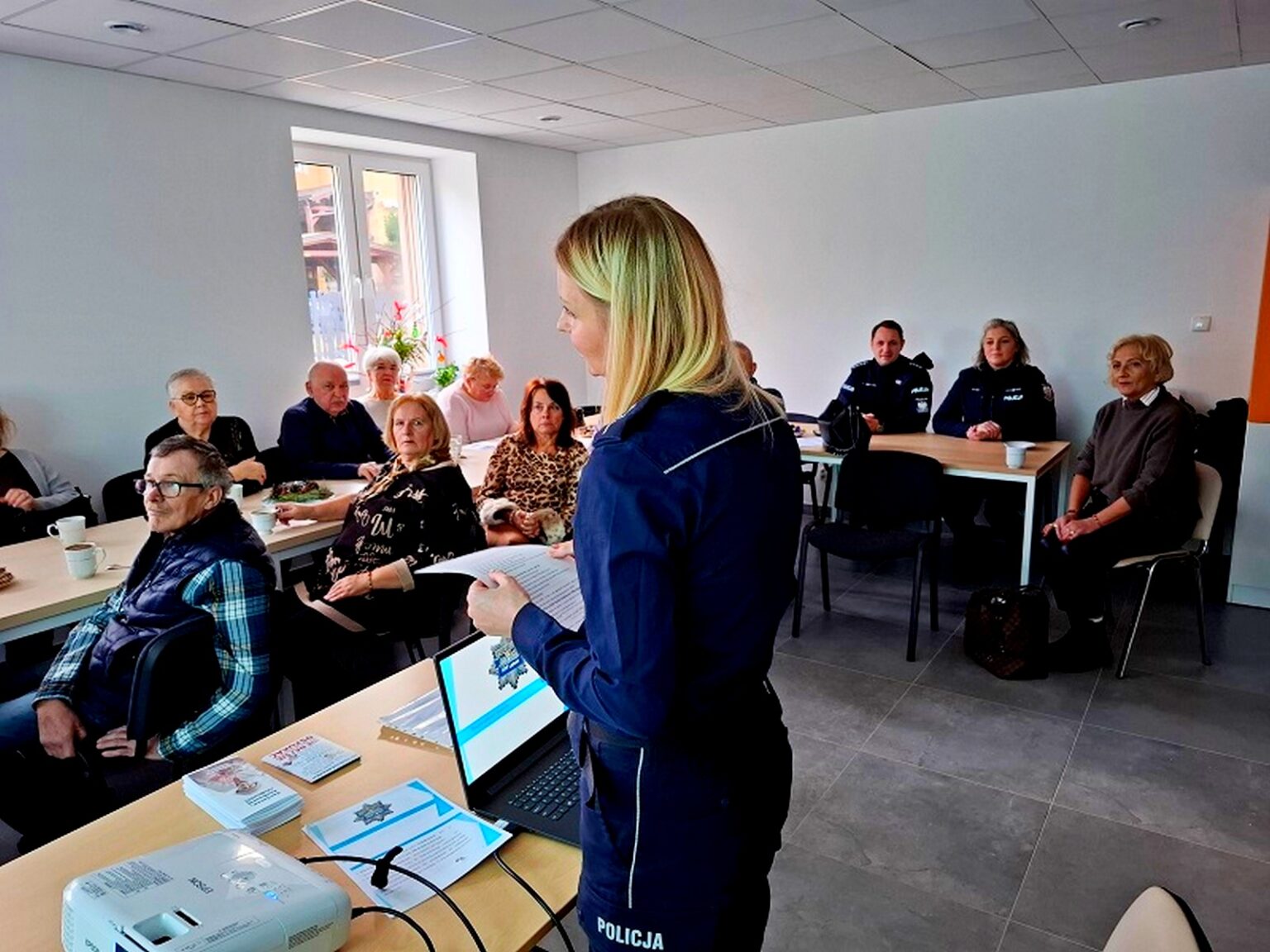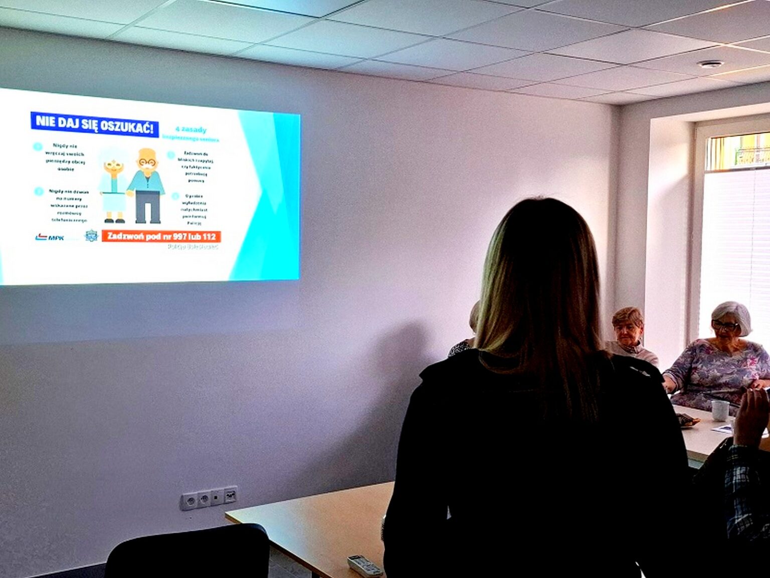 – Moderatorka debaty, wykorzystując multimedialną prezentację, przestrzegła seniorów przed znanymi już od dłuższego czasu oszustwami metodą „na wnuczka”, „na policjanta” , „na pracownika banku i innych instytucji”, na „BLIK” i wskazała jak ustrzec się przed utratą oszczędności – informuje asp. sztab. Marta Szałkowska, oficer prasowy Komendy Powiatowej Policji w Lęborku. – Następnie głos zabrała Honorata Urbańczyk z MOPS w Łebie, która ostrzegła przed przestępcami podającymi się za pracowników socjalnych, wskazując na co zwrócić szczególną uwagę w kontakcie z taką osobą i jak powinna wyglądać legitymacja prawdziwego pracownika socjalnego.
