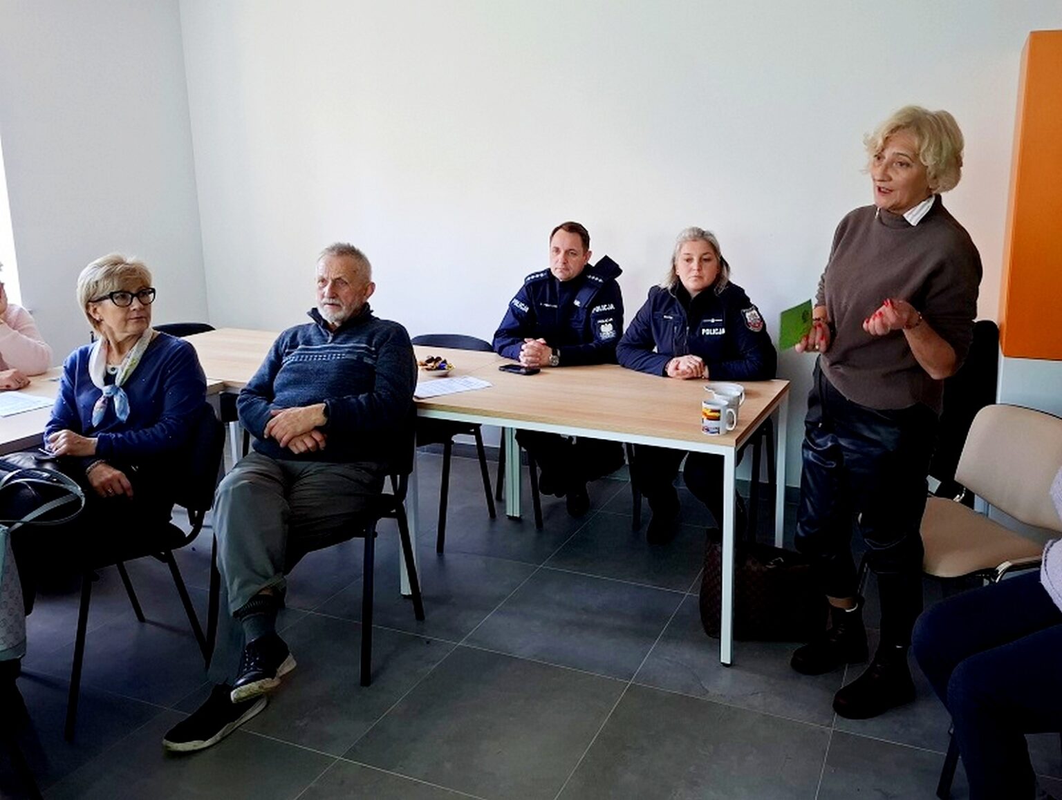 Po prezentacjach przyszedł czas na dyskusję i wymianę doświadczeń. Policjanci odpowiadali na pytania mieszkańców, wysłuchali nurtujących ich problemów i wspólnie debatowali nad sposobami ich rozwiązania. Na koniec spotkania dzielnicowa wręczyła seniorom elementy odblaskowe, dzięki którym zwiększy się ich widoczność na drodze.