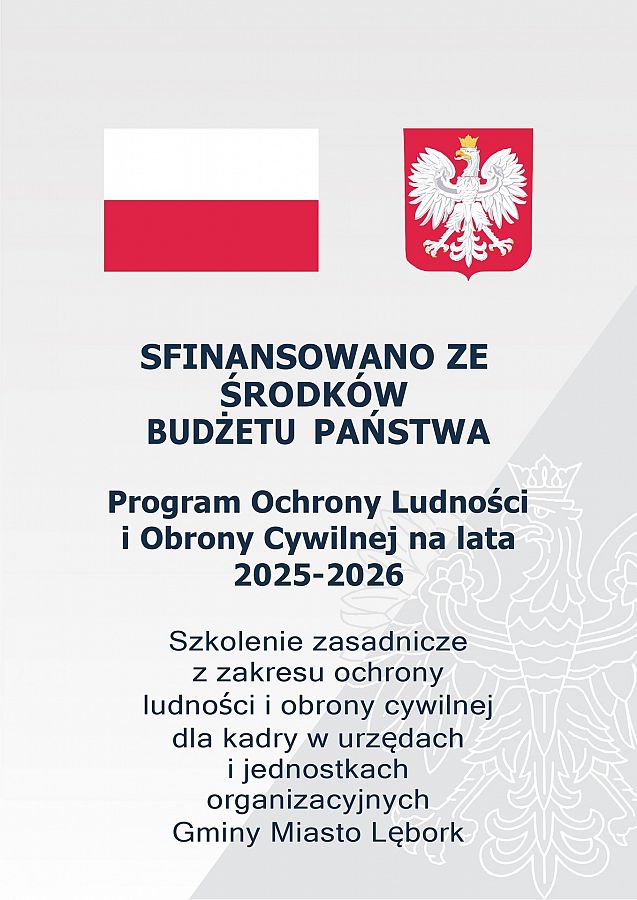 Szkolenia zostały sfinansowane z dotacji celowej w ramach Programu Ochrony Ludności i Obrony Cywilnej na lata 2025 – 2026 i przeprowadzone zgodnie z rozporządzeniem ministra spraw wewnętrznych i administracji z dnia 6 lutego 2025 r. w sprawie programów szkoleń z zakresu ochrony ludności i obrony cywilnej oraz wymagań dla podmiotów prowadzących szkolenia.