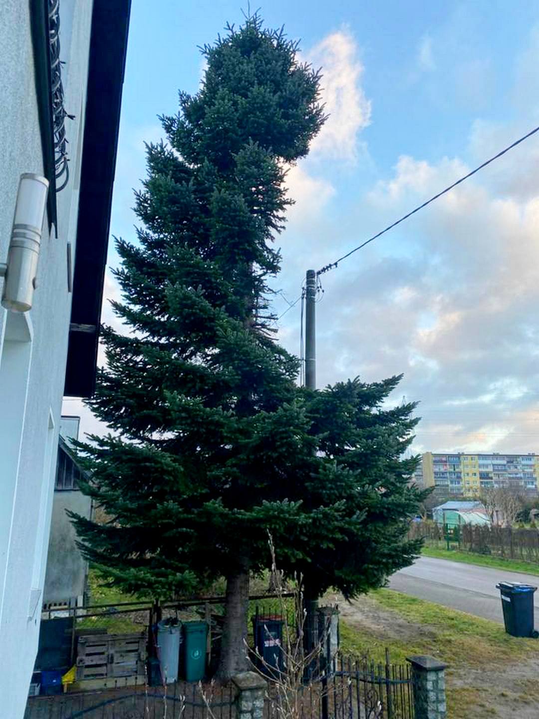 Zdarzenie miało miejsce we wtorek, 9 grudnia, o godzinie 8:00 rano. Efektem końcowym przycinki (jodły/świerku) jest załamana mieszkanka domu, przy którym rośnie drzewo.