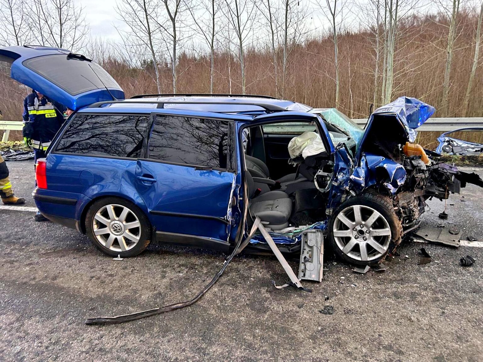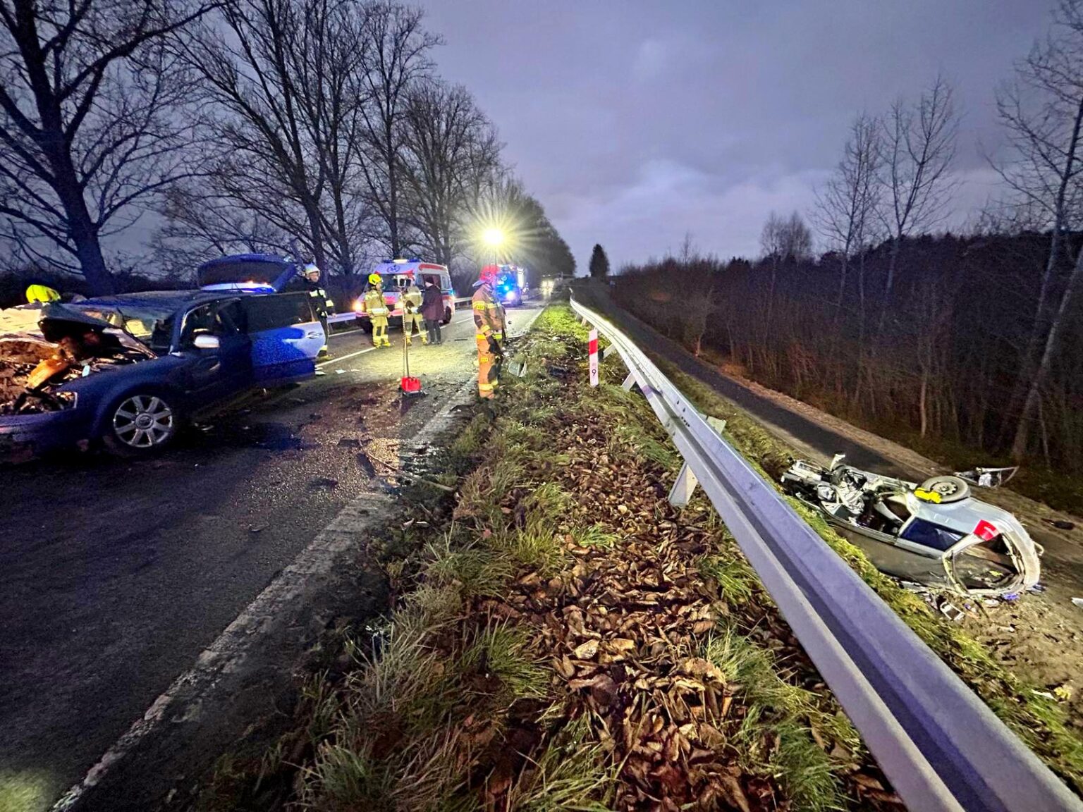 – W wyniku zderzenia golfa wyrzuciło z jezdni na ścieżkę rowerową – informuje asp. sztab. Marta Szałkowska, oficer prasowy Komendy Powiatowej Policji w Lęborku. – Niestety kierujący golfem 35-latek poniósł śmierć na miejscu. 46-letni kierowca passata z urazem nogi i 48-letnia pasażerka z podejrzeniem licznych złamań zostali przewiezieni do szpitala. Na miejscu pod nadzorem prokuratora pracują policjanci z grupy operacyjno-dochodzeniowej i technik kryminalistyki, którzy zabezpieczają ślady i dowody. Ciało 35-latka zostało zabezpieczone do badań sekcyjnych, z kolei badanie alkotestem wykazało, ze kierowca passata był trzeźwy. Śledczy będą szczegółowo wyjaśniać przyczyny i okoliczności tego tragicznego wypadku. Apelujemy o ostrożność za kierownicą i dostosowanie prędkości do warunków drogowych. Czasem wystarczy chwila nieuwagi, by doszło do tragedii.